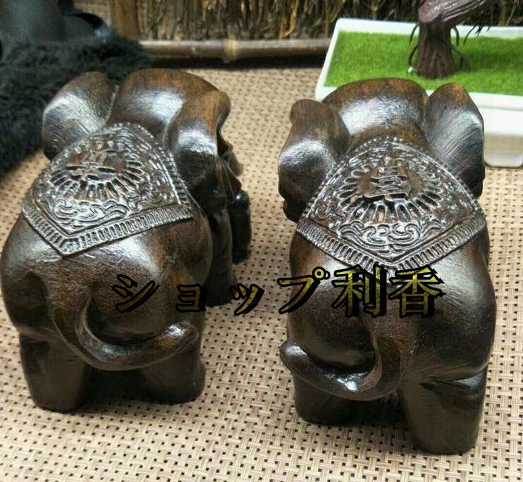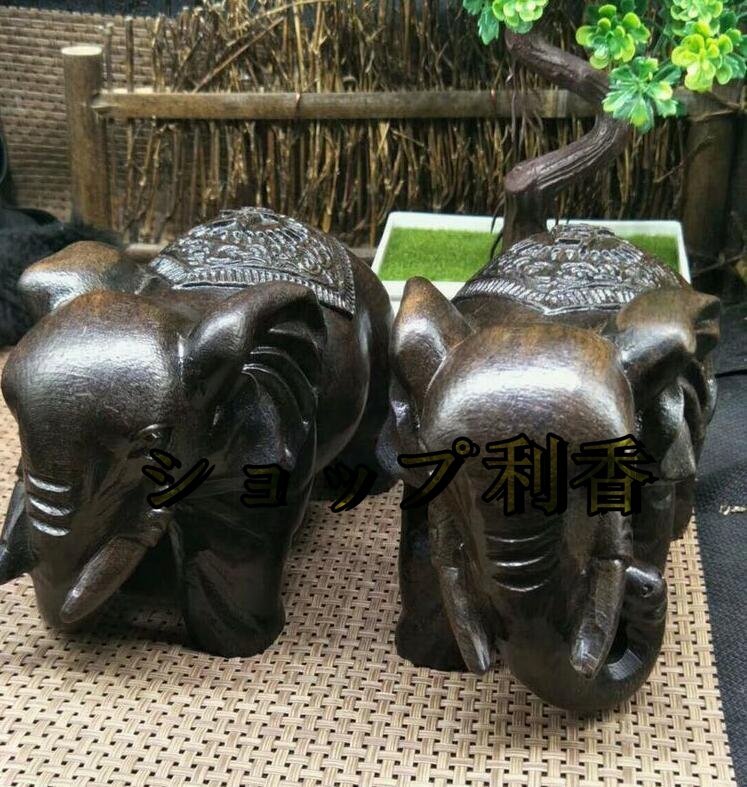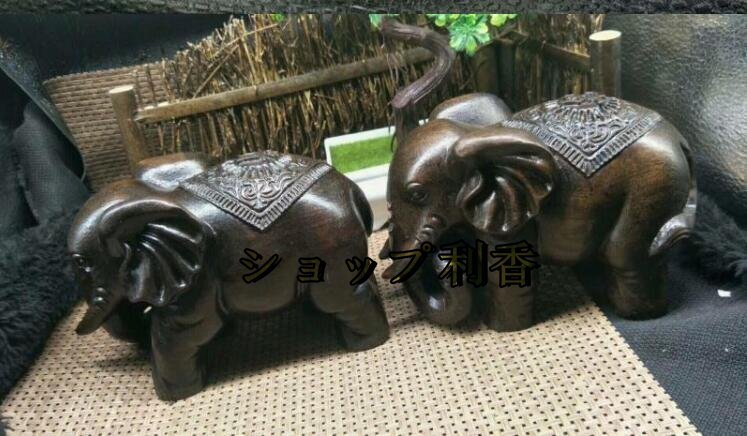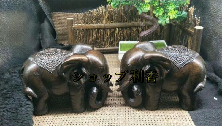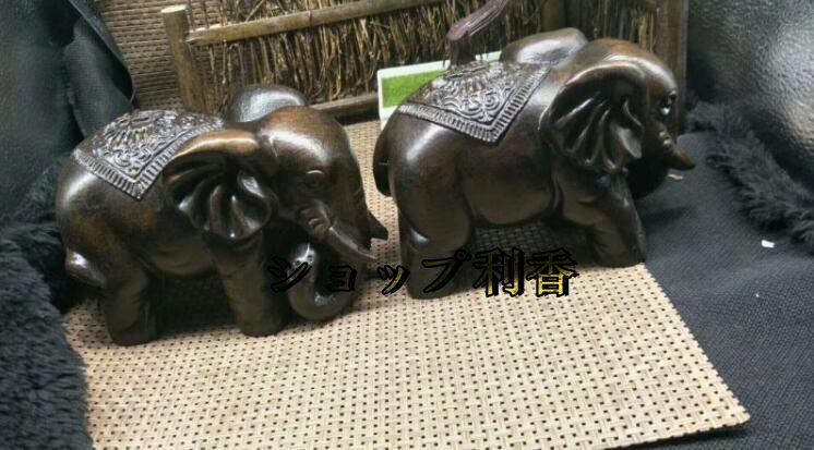 極上品 ★本物の天然沈香木彫り象(富貴象)の家の置物の実木質工芸品ペア