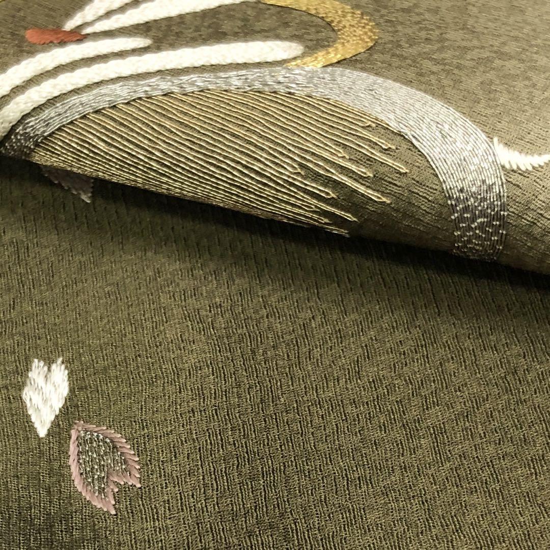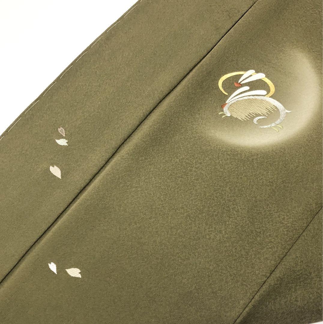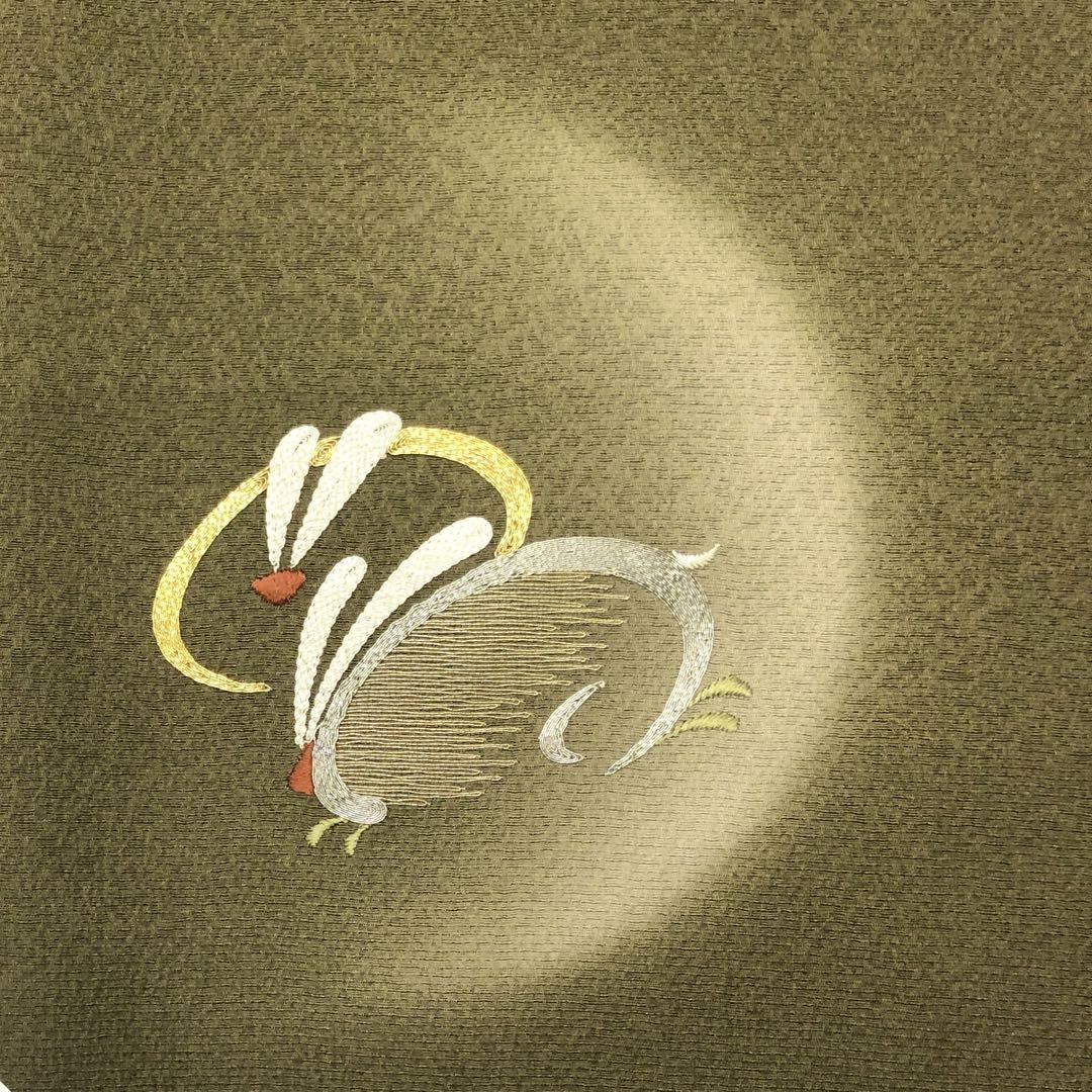 可愛いうさぎに月、花びら模様の金銀駒刺繍を使った飛び柄の刺繍柄でデザインされた品のある素敵な柄裄のお品でございます。