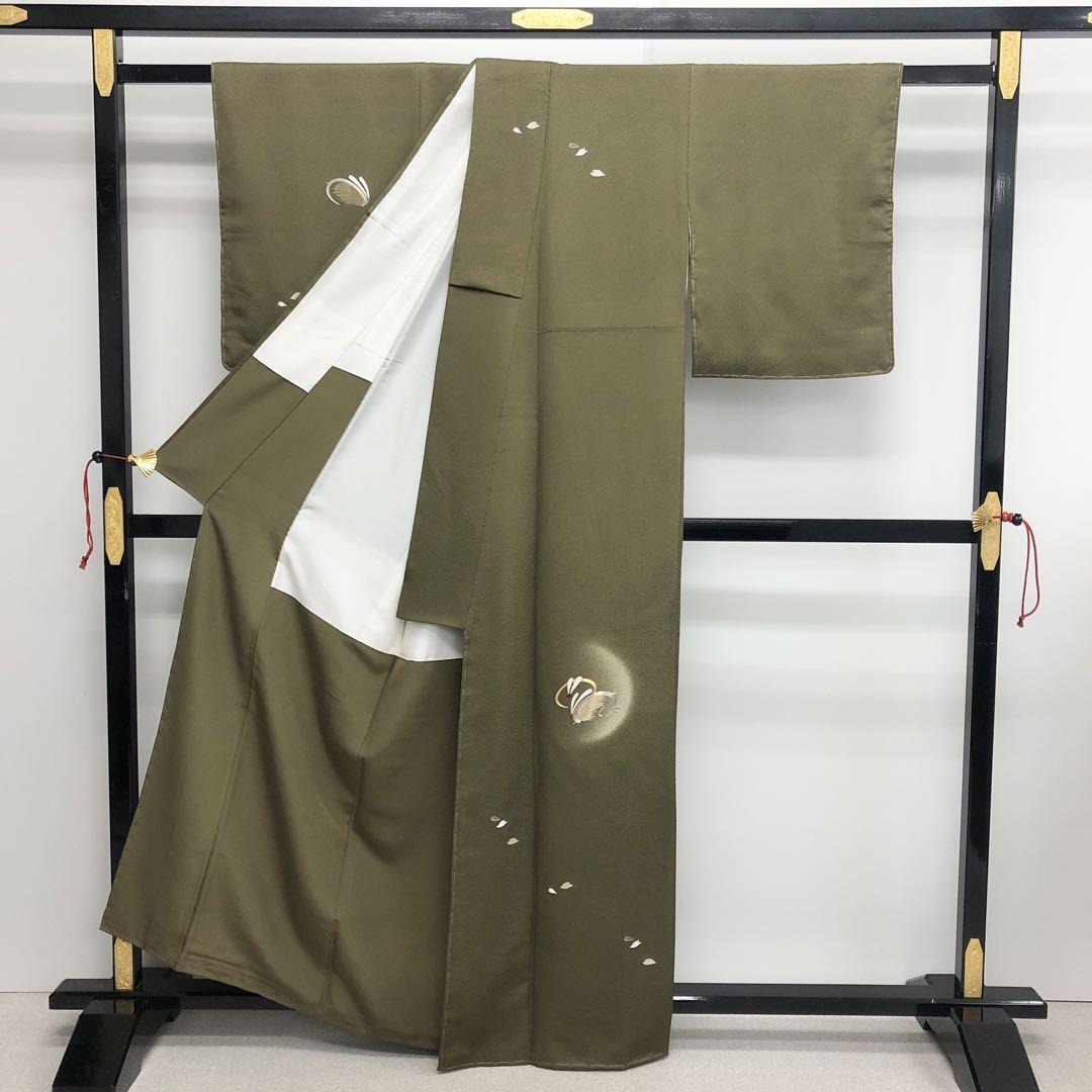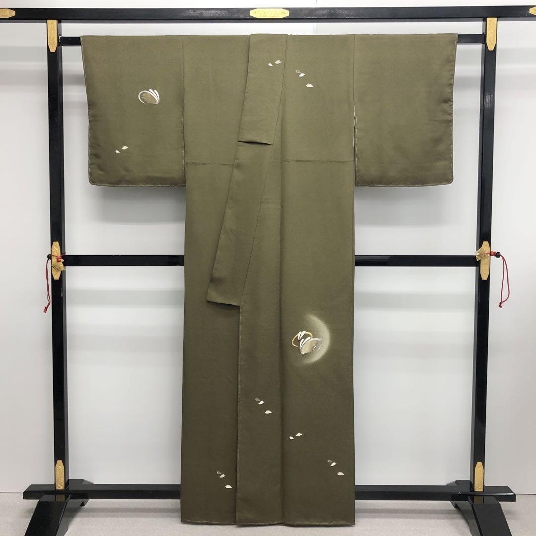 付下げ 可愛いうさぎに月 花びら模様 飛び柄刺繍 駒刺繍 しつけ糸 K-3515