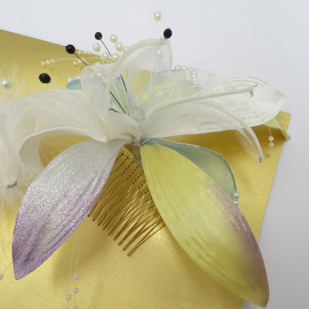 | 髪飾り・かんざし 振袖用 花 ホワイト×パステル 振袖 結婚式 パーティー フォーマル ドレスにも ユリ |