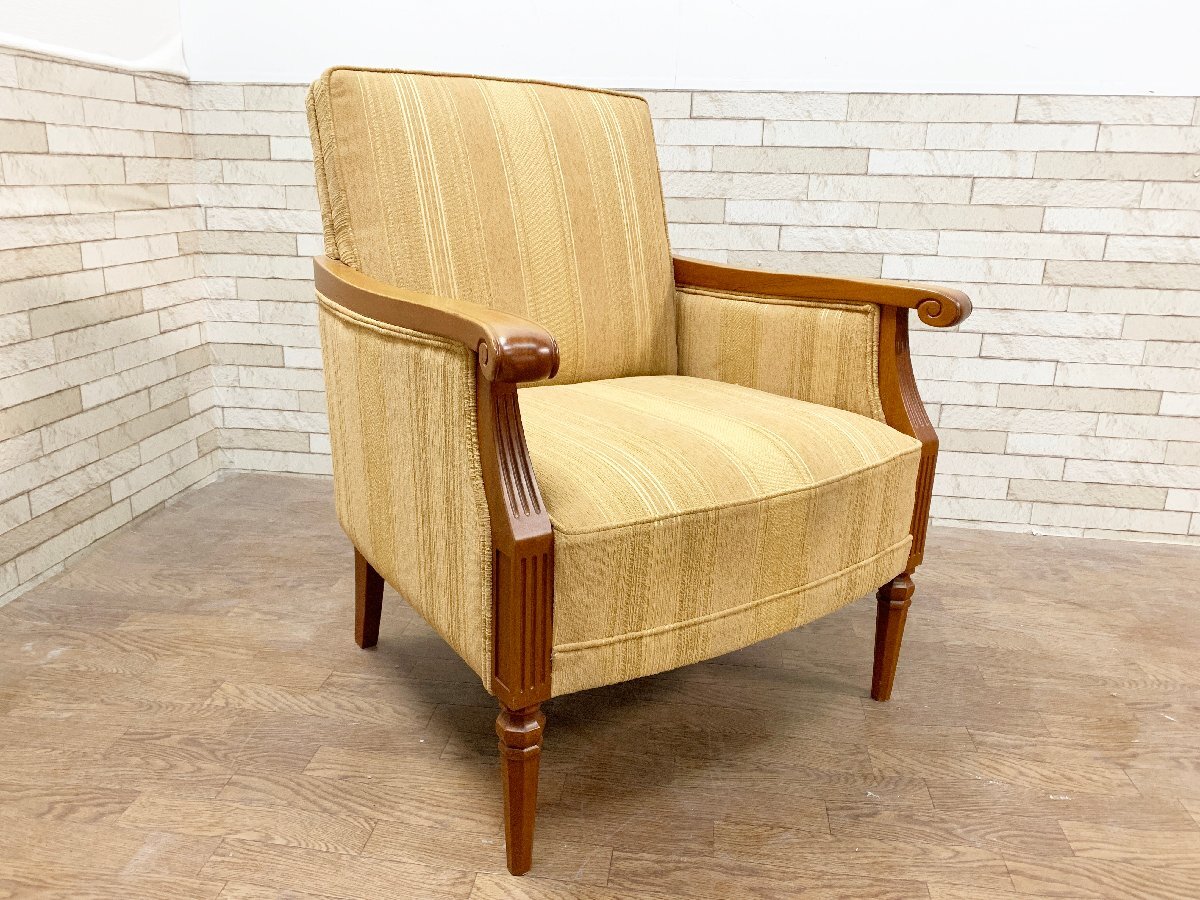 1人掛けソファ アームチェア ラウンジチェア シングルソファ 椅子 家具 エレガント ファブリック クラシック 英国アンティーク調 (A)(貝431