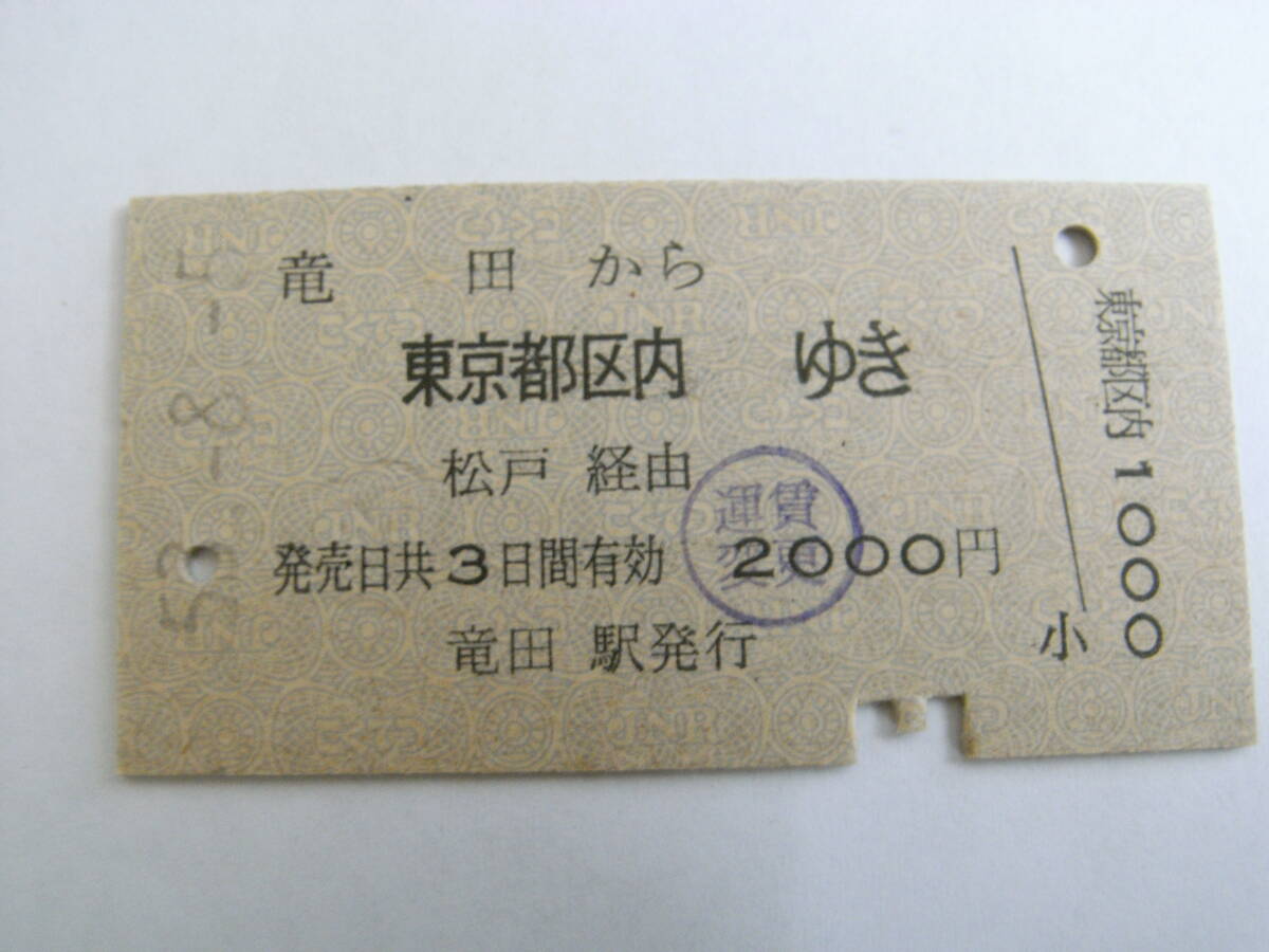 常磐線 竜田から東京都区内ゆき 松戸経由 昭和53年8月5日 竜田駅発行