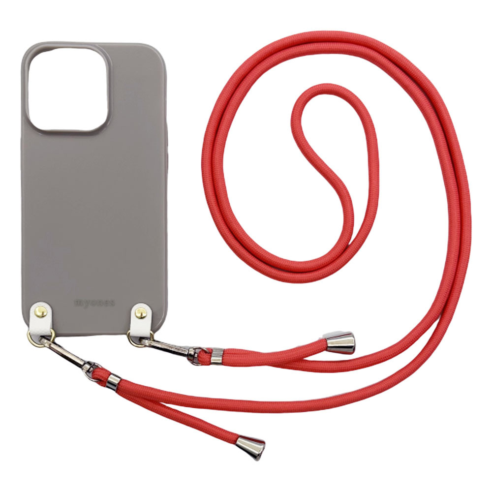 かんたんスマホ2 BASIO4 KYV47(くすみグレー/レッド)ひも TPU ストラップ 肩掛け 首かけ 斜めが スマホケース かわいい