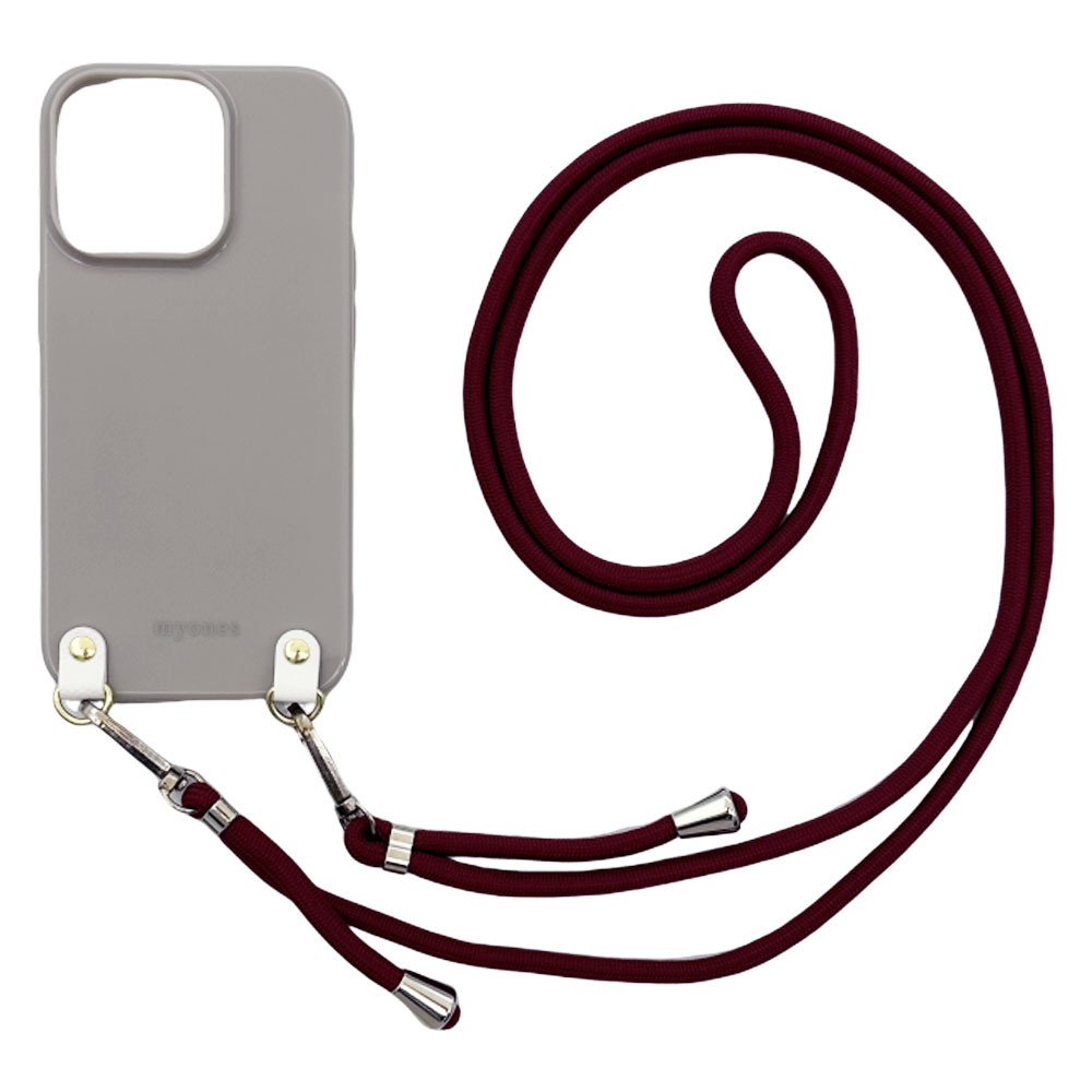 iPhone12 mini(くすみグレー/ボルドー)ひも TPU ストラップ 肩掛け 首かけ 斜めが スマホケース かわいい