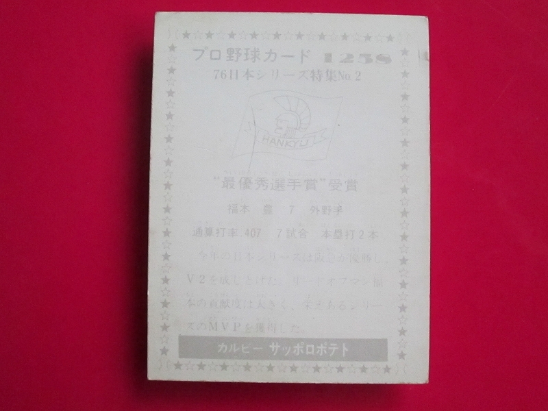 ・販売:カルビー株式会社 ・販売時:1976年 ・サイズ: 8.0 cm x 6.0 cm ・素材:紙 ・中古扱い ・40年以上経過しているカードです。状態は画像をご確認ください。 |