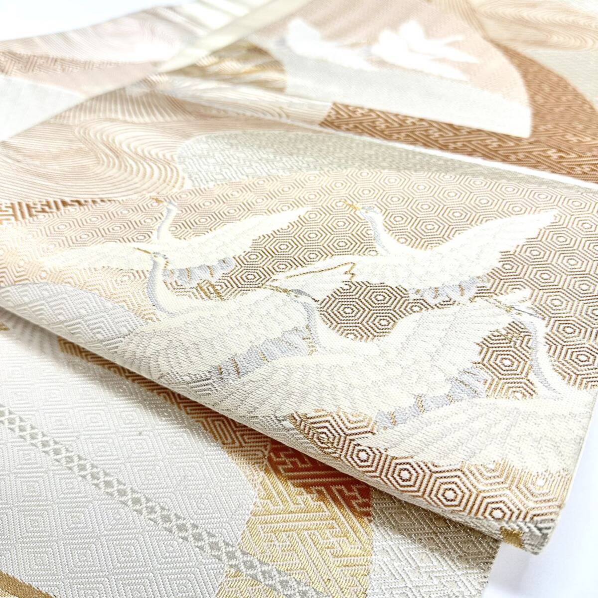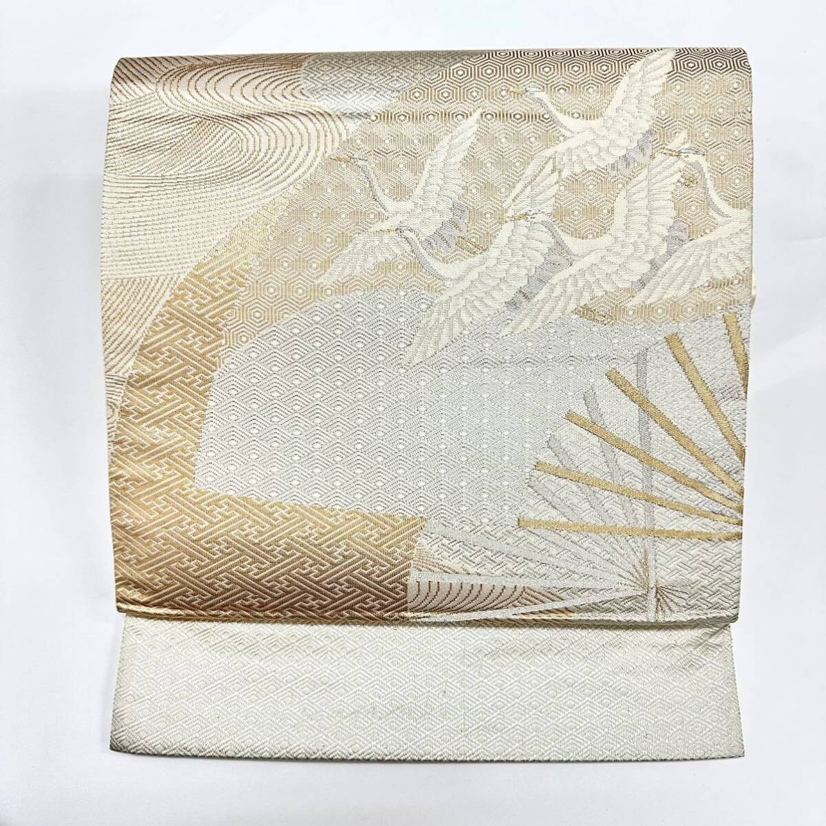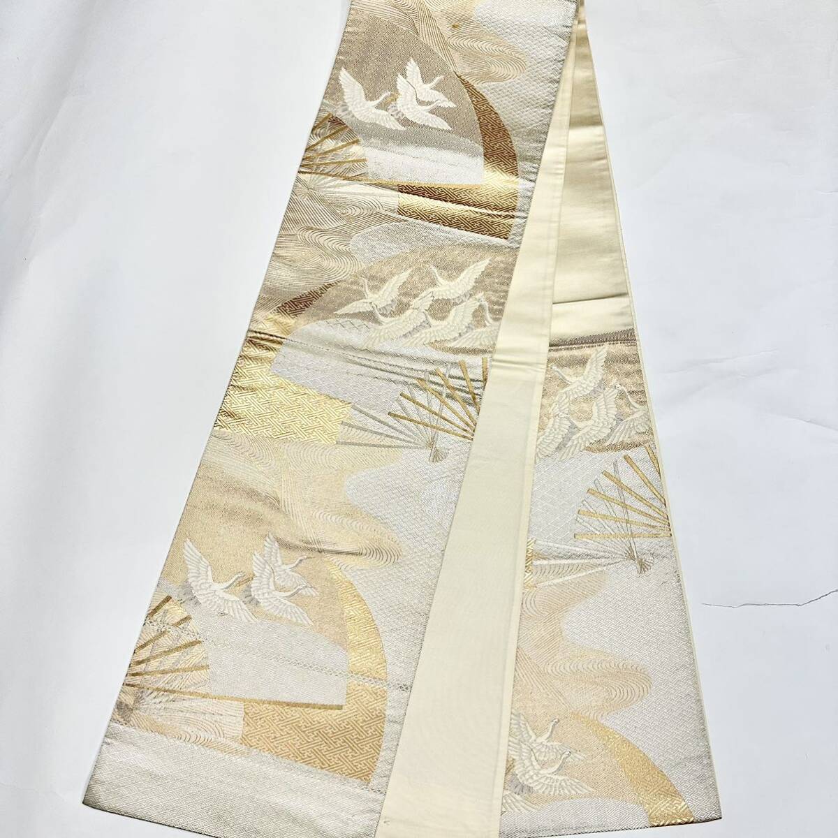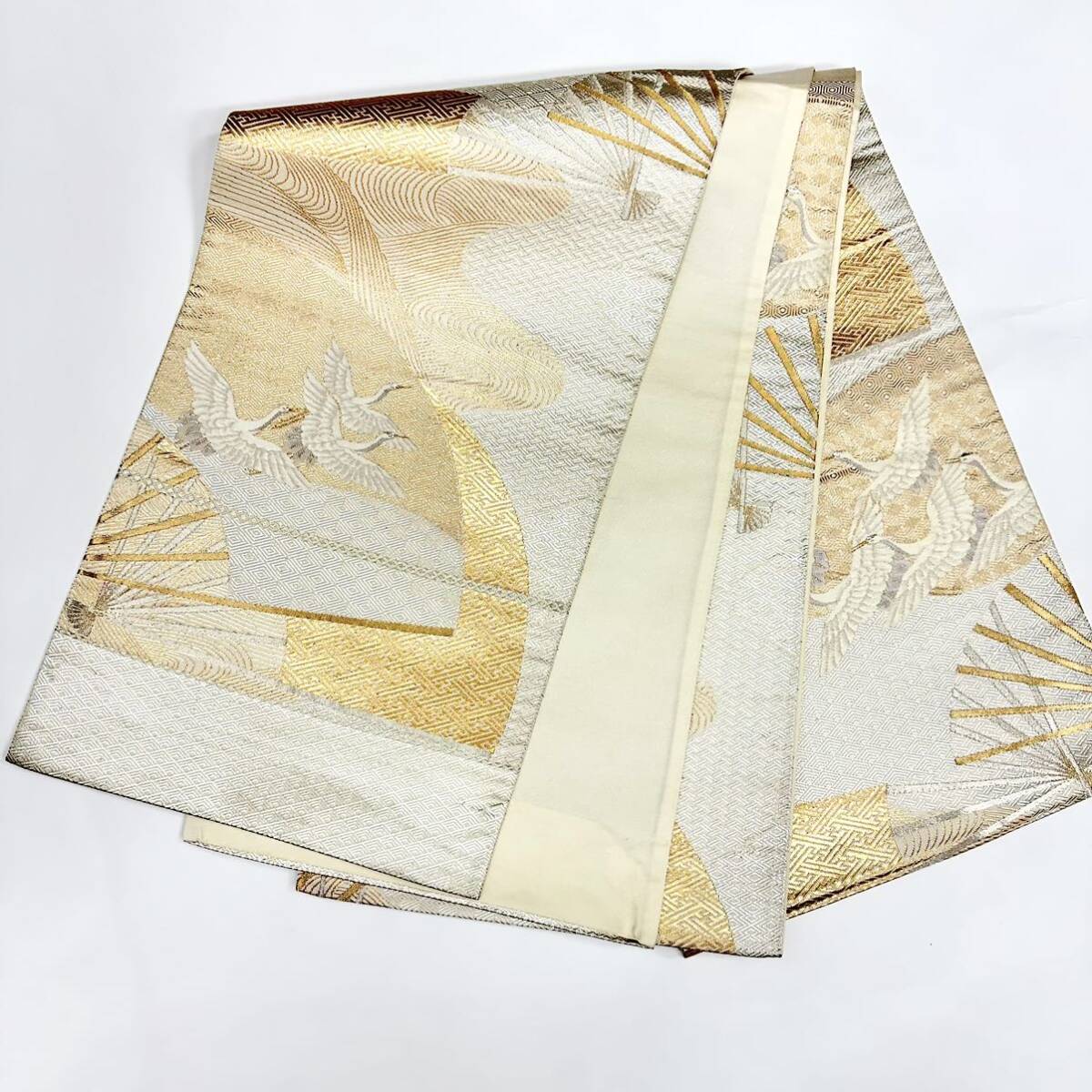 【七福】c59 正絹 袋帯 六通 太鼓柄 フォーマル 金糸 銀糸 豪華 古典柄 正倉院紋様 長さ 約cm 留袖 訪問着 色無地