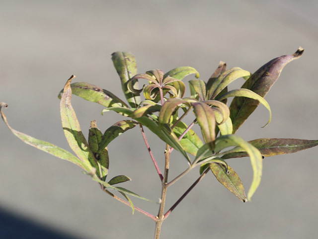 タイワンニンジンボクは2~5mになる落葉低木です。東南アジア原産です。葉は長い葉柄をもった掌状複葉で、3~5枚の小葉が出ます。小葉は楕円形状卵形で全縁です。花は円錐花序をだし、小さな花をたくさん咲かせます。雌雄同株です。セイヨウニンジンボクにとてもよく似ていますが、本種の方が葉に丸みがあります。葉はハーブティーとして使用されます。花色は基本的に淡紫色ですが、品種によって白色の花が咲くものもあります。