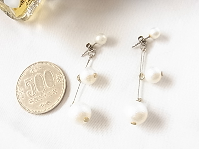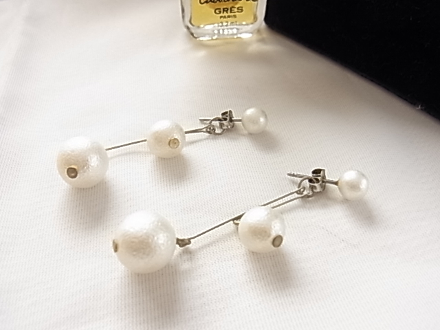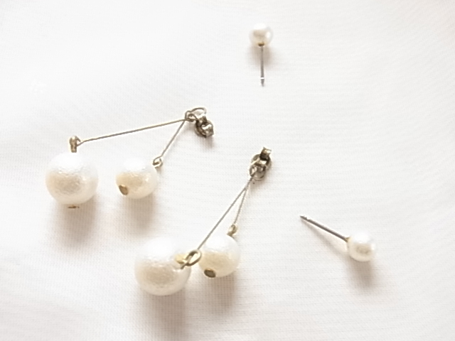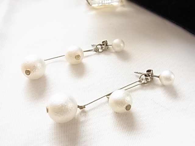 バッグキャッチが可愛らしいコットンパール 軽量 バッグキャッチはお手元のピアスにも使えてお得感 耳元で揺れるバッグキャッチピアス▽