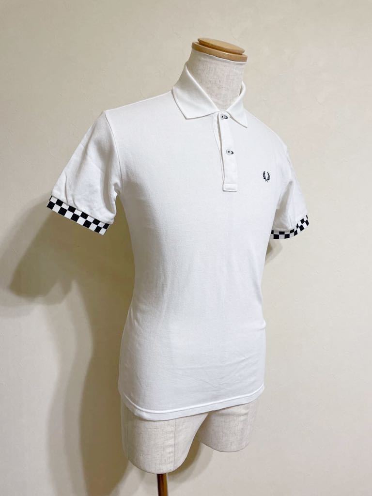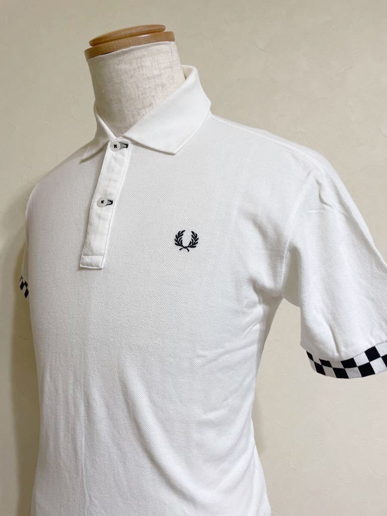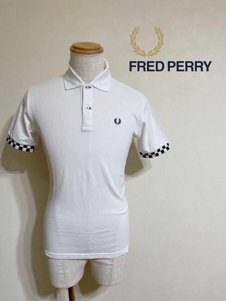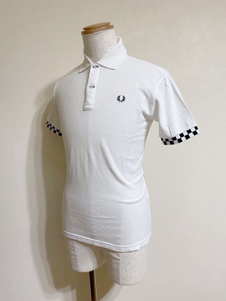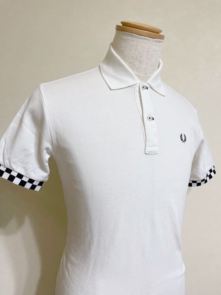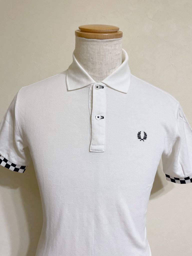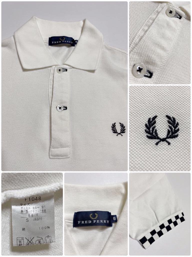 FRED PERRY フレッドペリー 鹿の子 ポロシャツ トップス ホワイト サイズS 半袖 F1048 白 黒チェッカー柄 ヒットユニオン 日本製