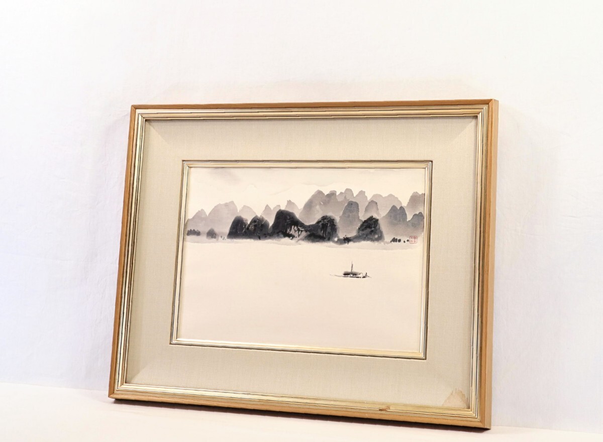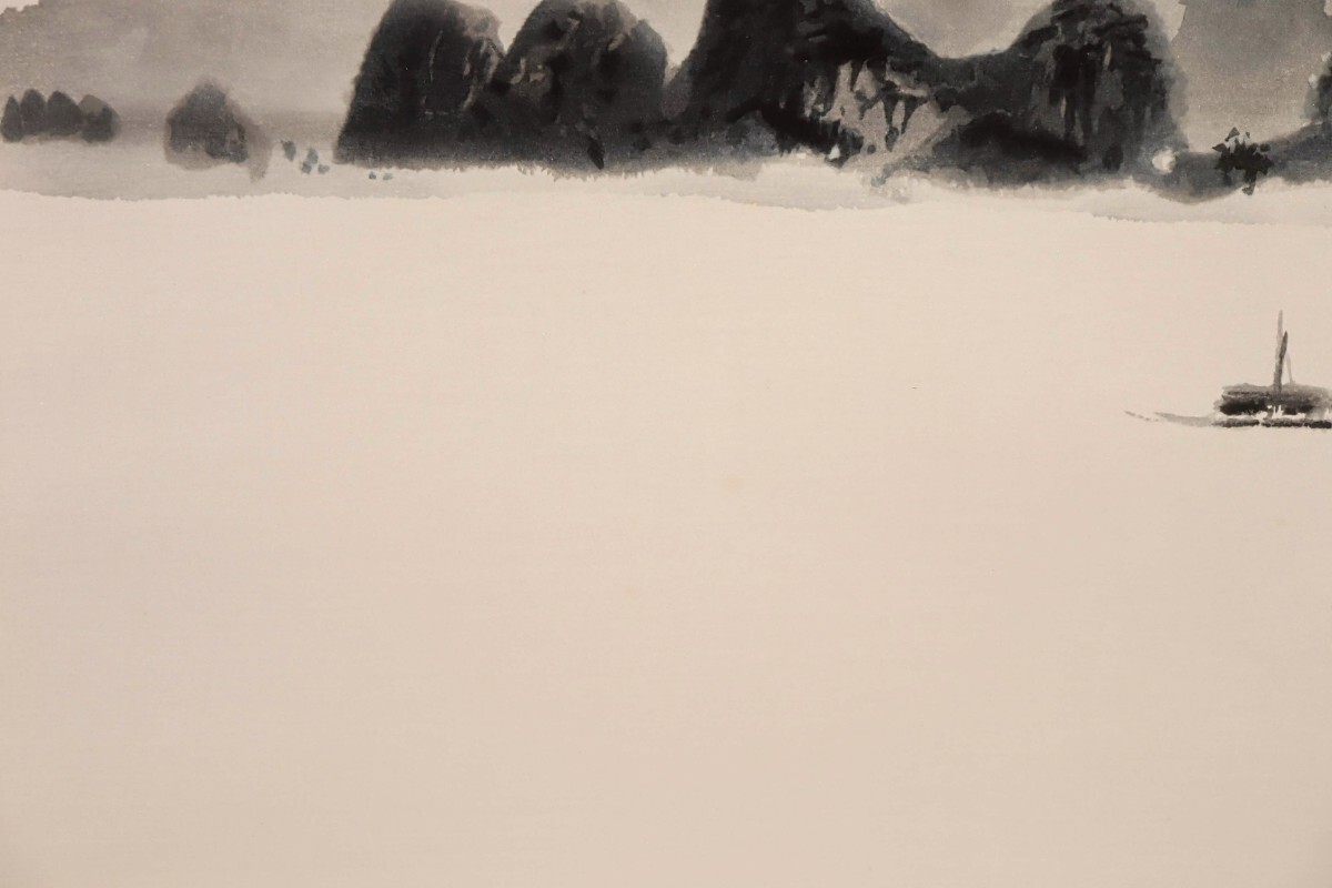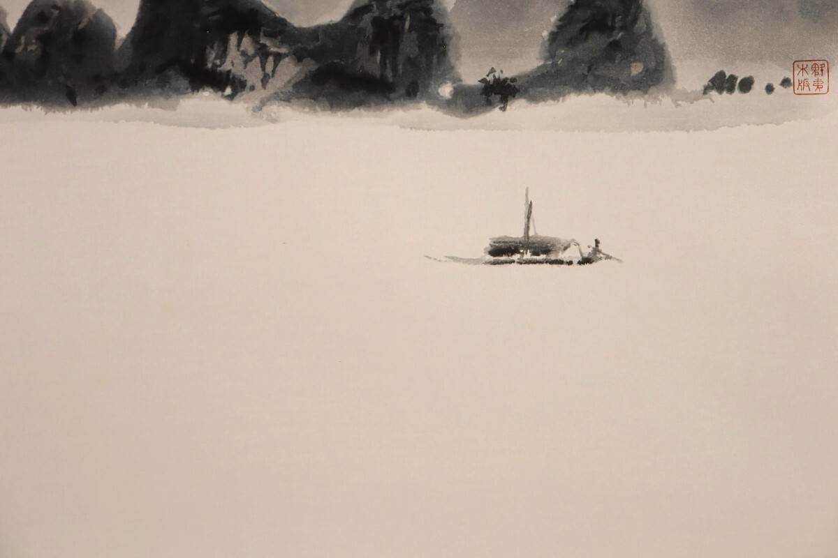 真作 東山魁夷 1992年木版画「漓江千里」画 42×30cm 神奈川県出身 日本芸術院会員 水墨の複雑な諧調表現で独自世界を確立 静謐な大河 8861