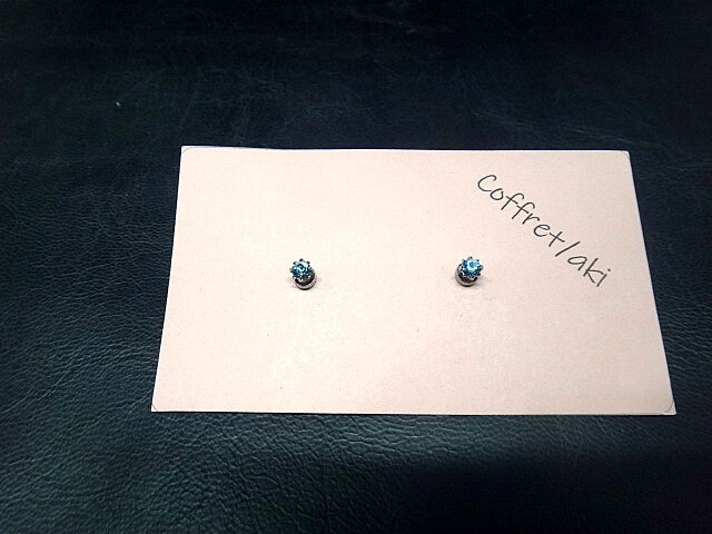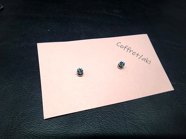 "アクアマリン" クリスタル マグネット イヤリング(ピアス風