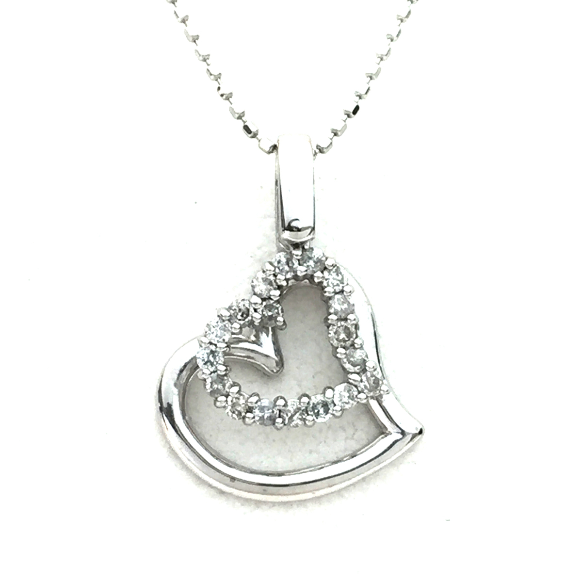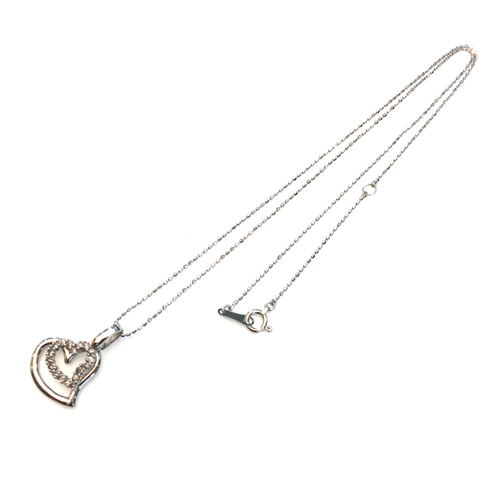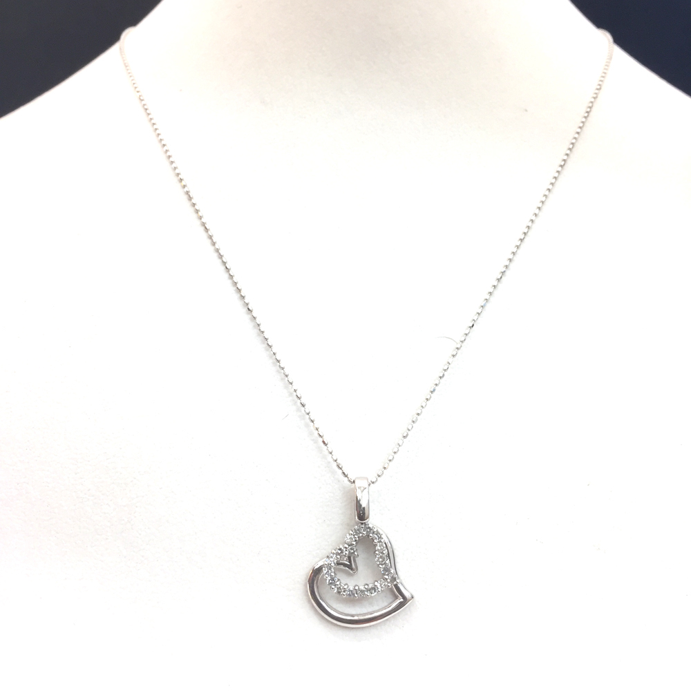 商品名 | 【中古】K18WG ダイヤ ハート ネックレス D 0.25ct |