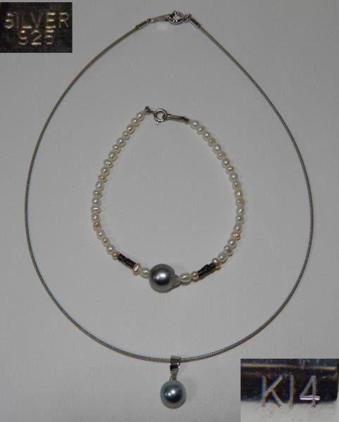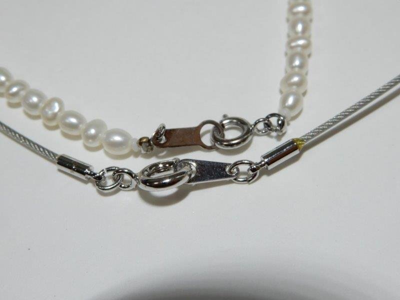 長さ約38cm。ネックレスのトップ金具のみK14でネックレスには素材の刻印ありません。ブレスレット金具は銀製です。現状優先とお考え頂き大まかな外観状態は写真をご参照頂けますようどうぞよろしくお願いいたします。その他古いもので、経年の擦れ、汚れ、傷等ございます。