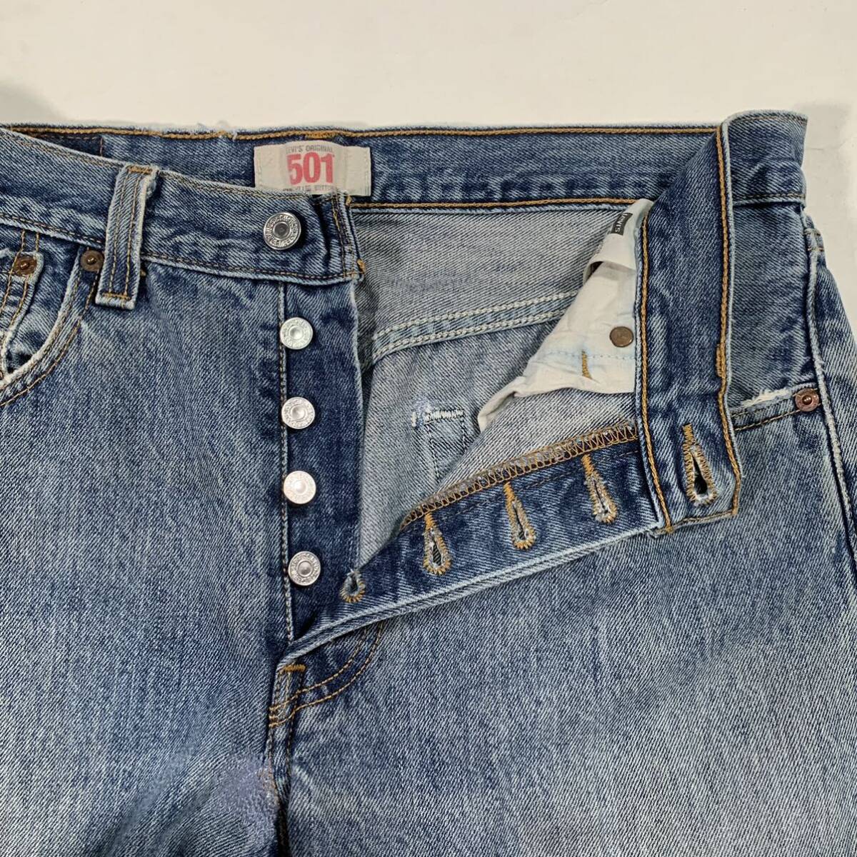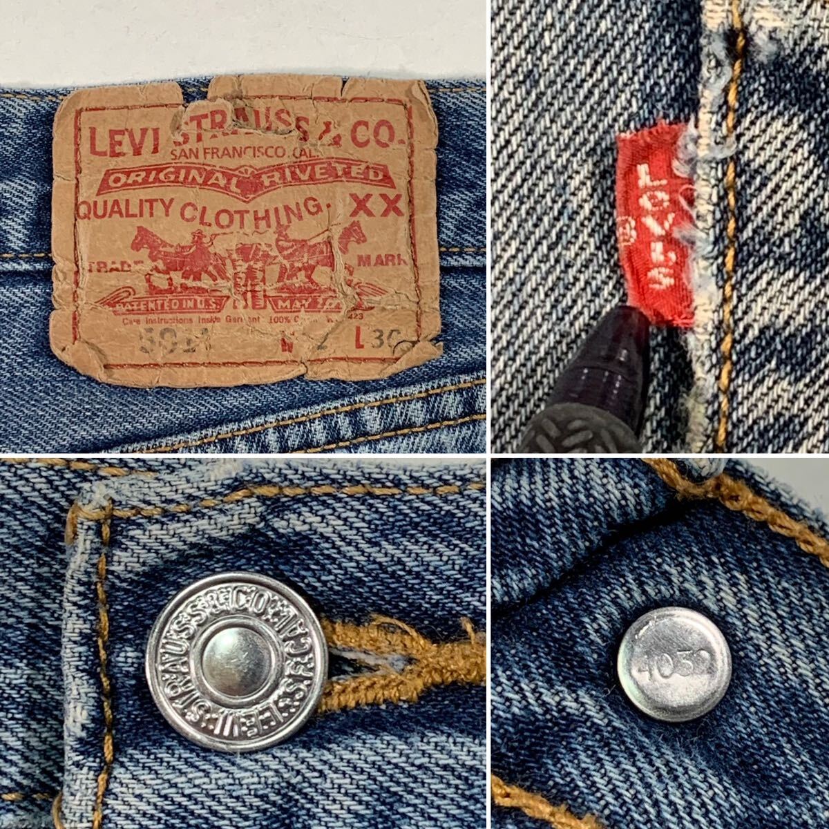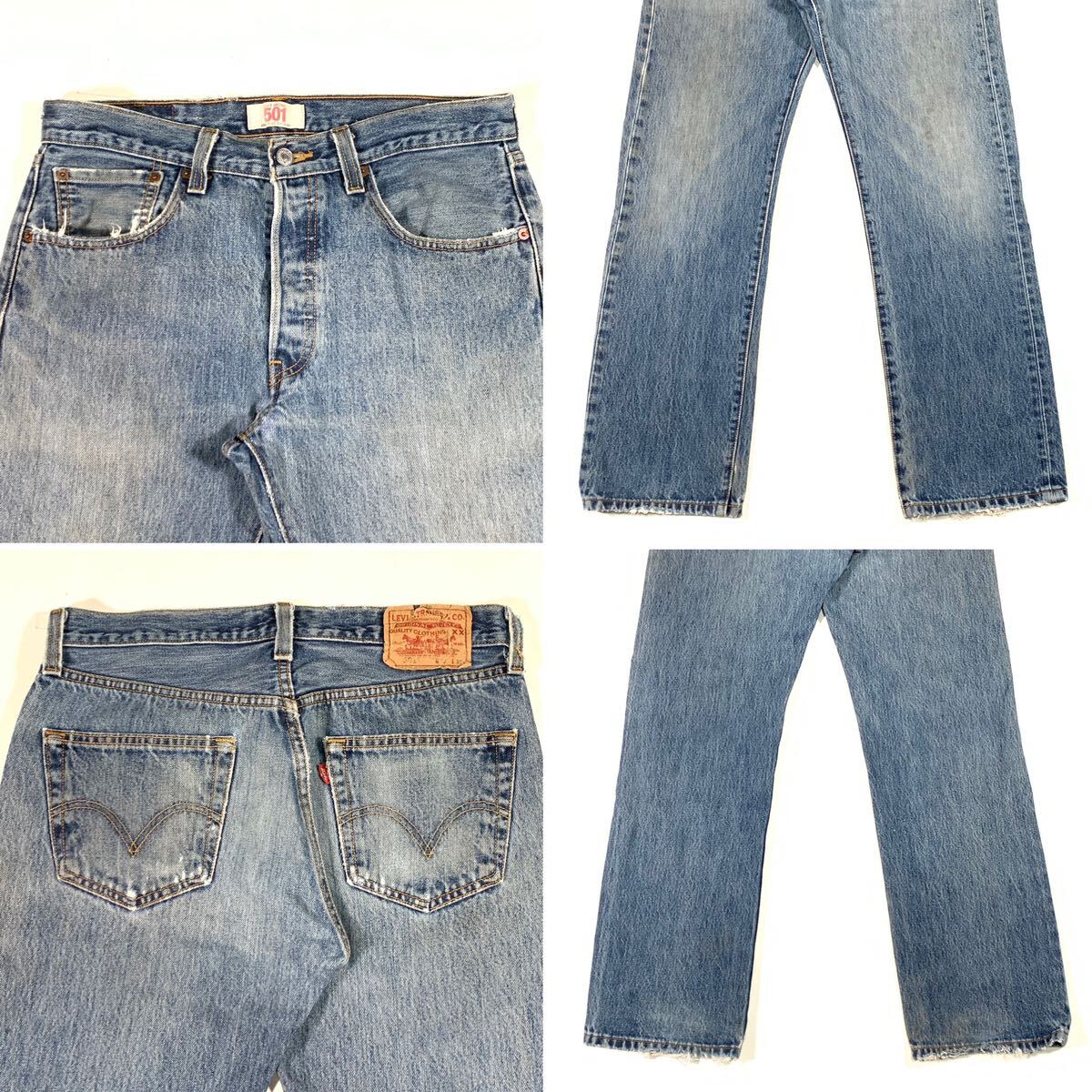 股部分にリペア跡があります。バック・サイドポケットや裾に擦れが見られますが、ビンテージならではの味わいがあると思います。