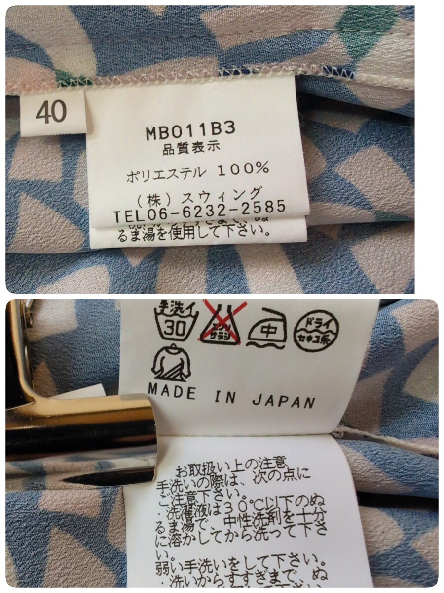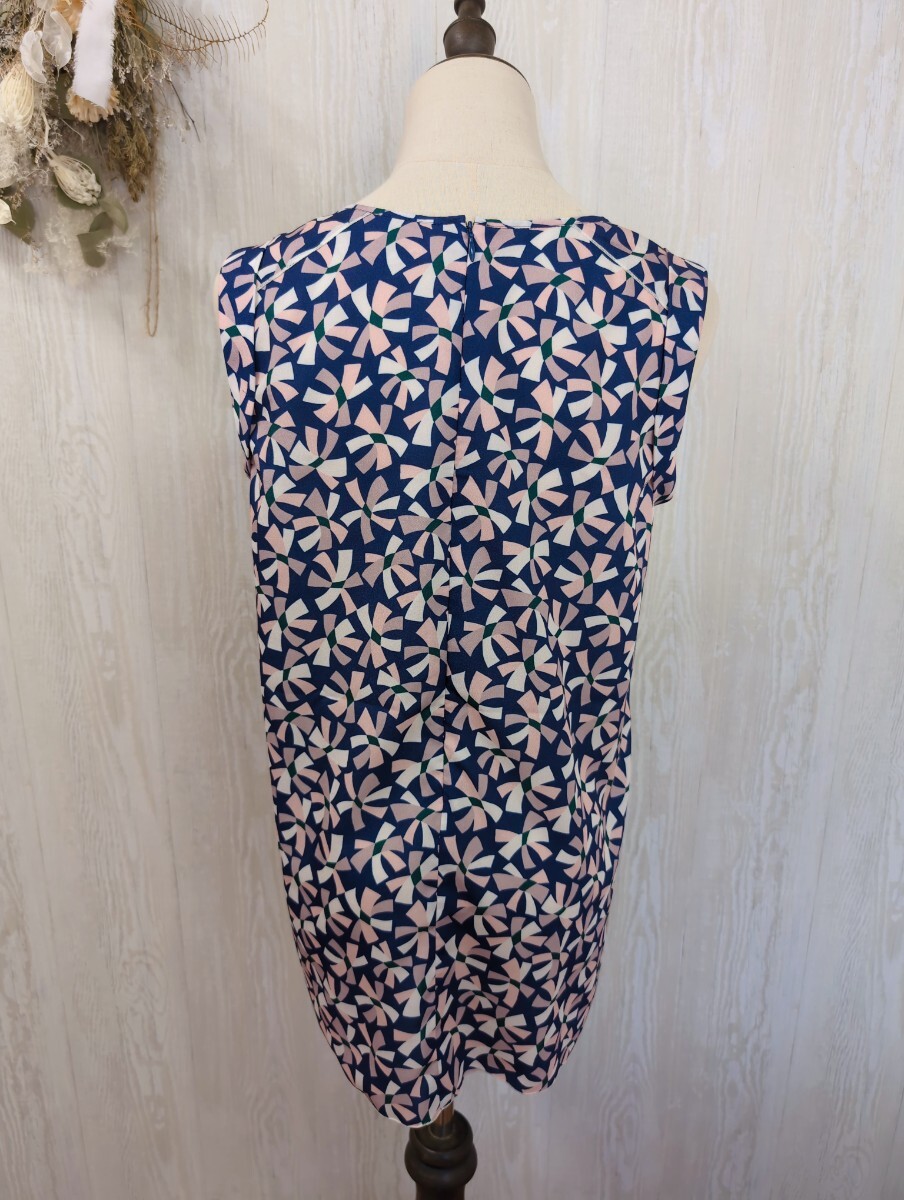 マーレンダム MARLENEDAM ITALY ノースリーブ カットソー 40 ネイビーにピンクのリボン柄 総柄 ポリエステル 日本製 ㈱スウィング レディース トップス 春夏もの