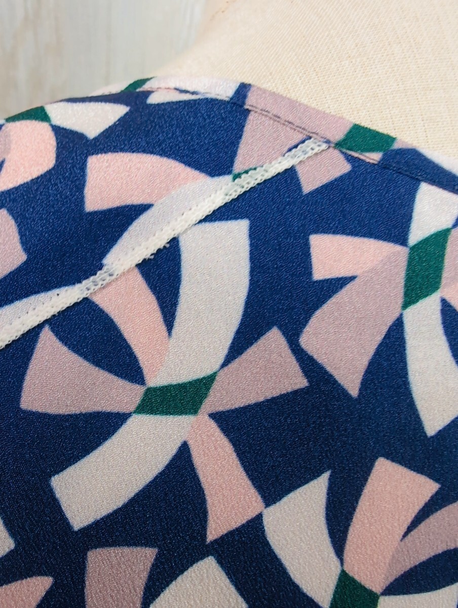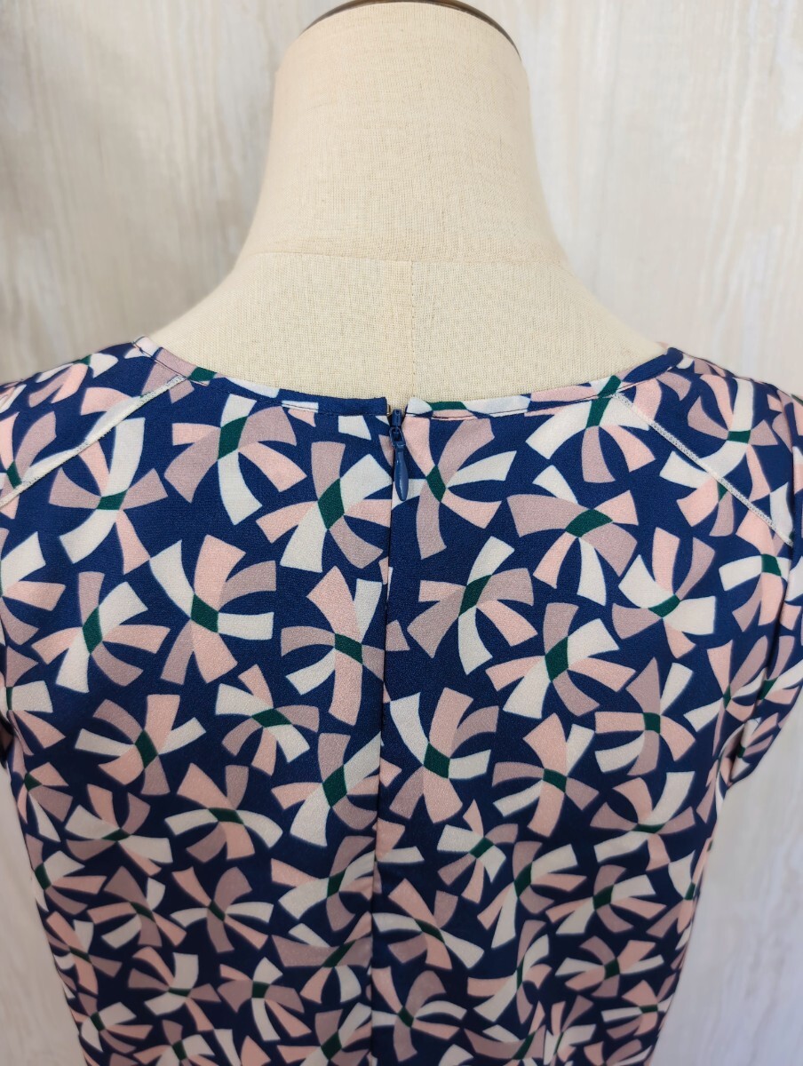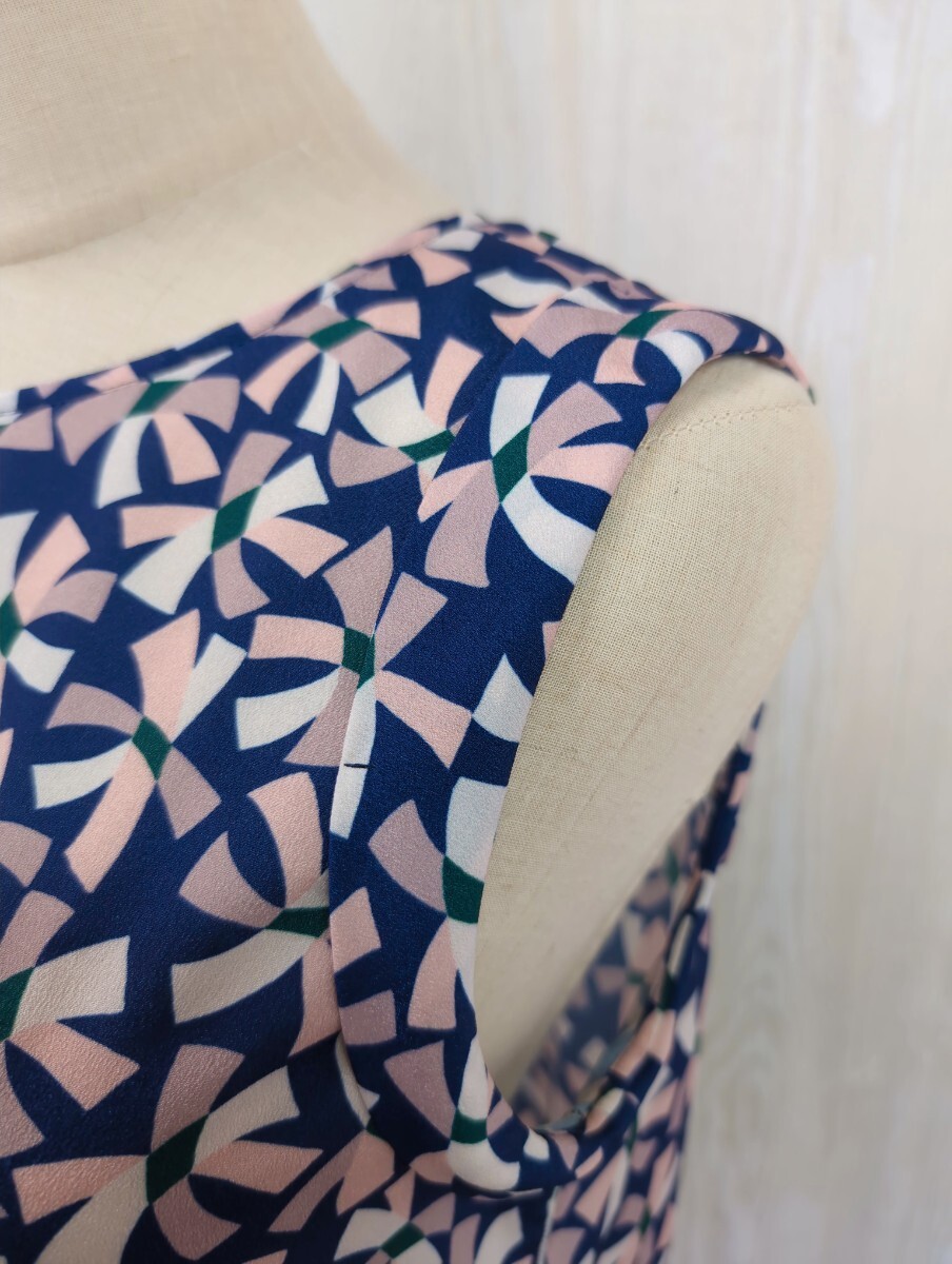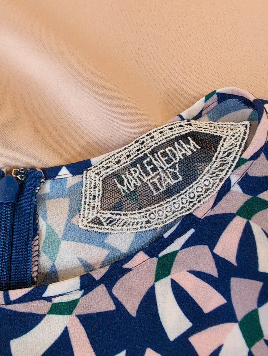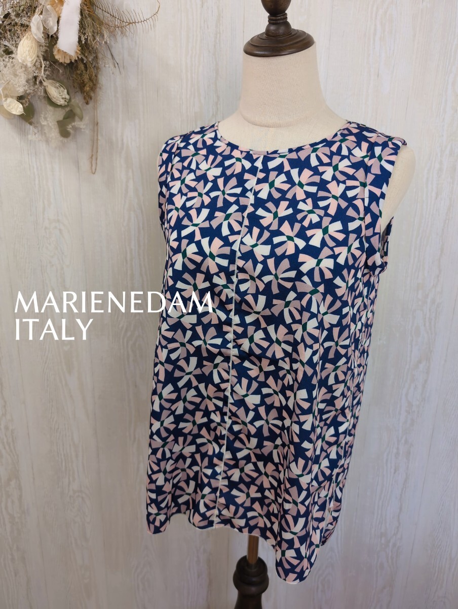 マーレンダム MARLENEDAM ITALY ノースリーブ カットソー 40 ネイビーにピンクのリボン柄 ポリエステル 日本製 レディース トップス 春夏
