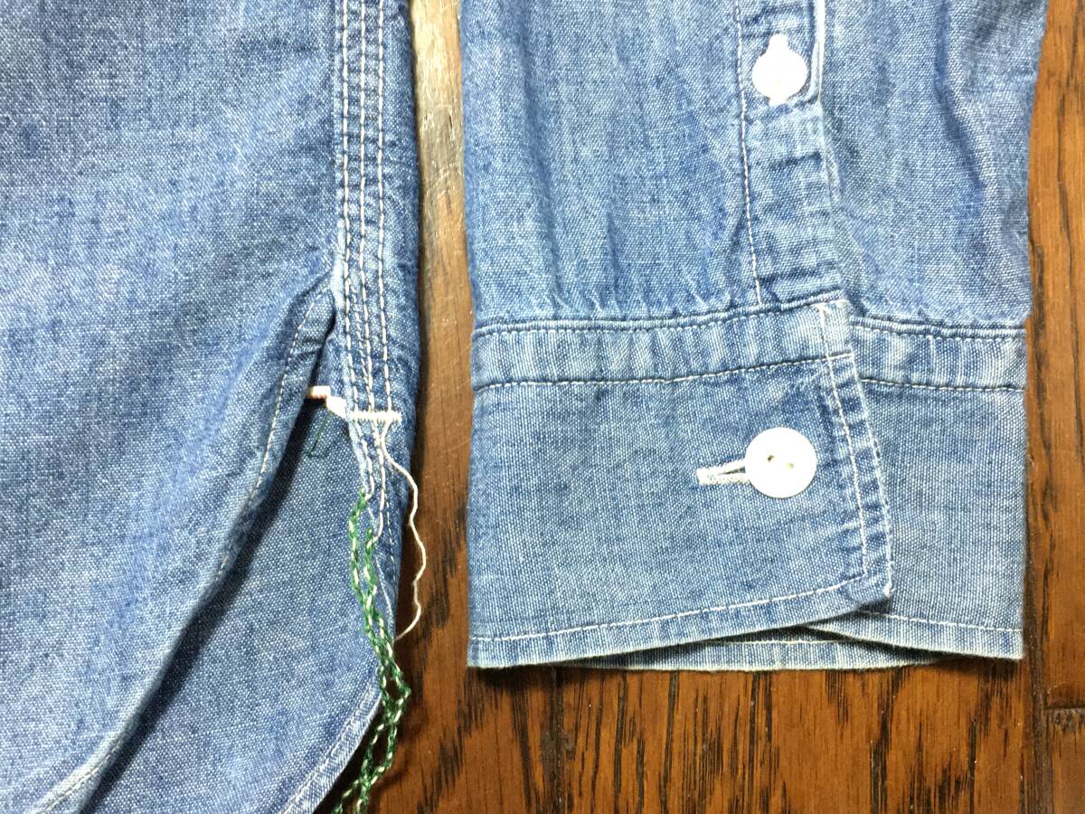 襟はダブルステッチでアームやサイドはトリプルステッチになります。