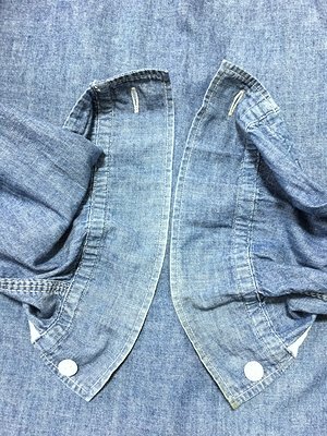 状態は襟に色落ちや薄い黄ばみ、カフスに薄い黄ばみ、背面左裾上に色落ちがございます。