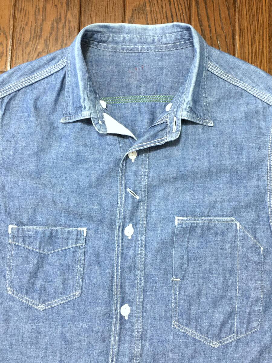 サニースポーツ SunnySports ガチャポケ マチ付き ビンテージ スタイル シャンブレーシャツ ブルー ボタンダウン 日本製