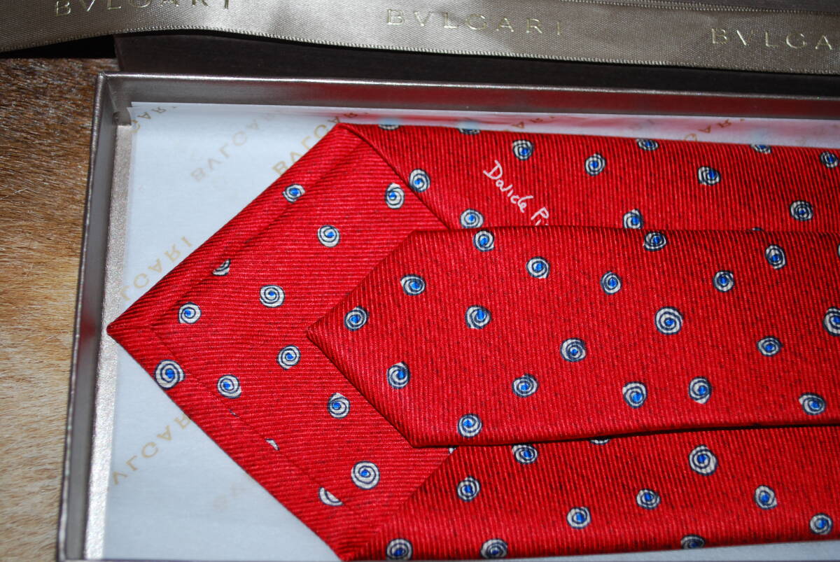 写真のものが全てのブルガリシルク100%ネクタイ(リボン・ネクタイ専用箱付き)です。タグは付いていませんが展示未使用品ですので、傷やほつれ、擦れ、汚れの全然無い、とても綺麗なネクタイです。大剣先幅は約9.8センチあります。リボン&ネクタイ専用箱付きですので、プレゼント用にいかがでしょうか♪♪画像を良くご覧の上、ノークレームノーリターンで宜しくお願いいたします。