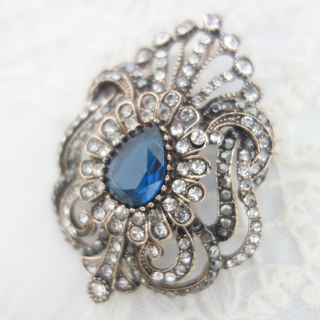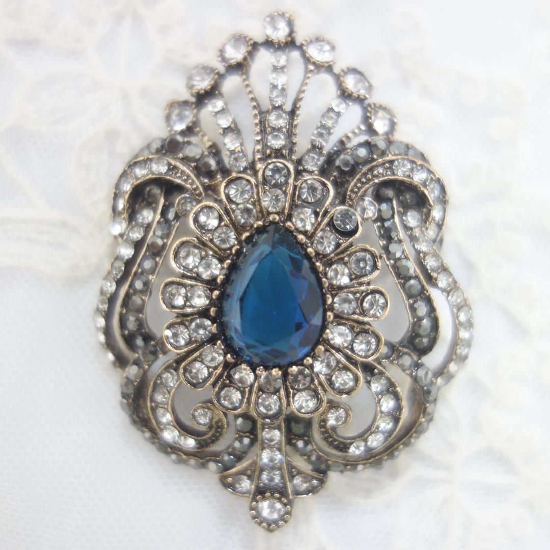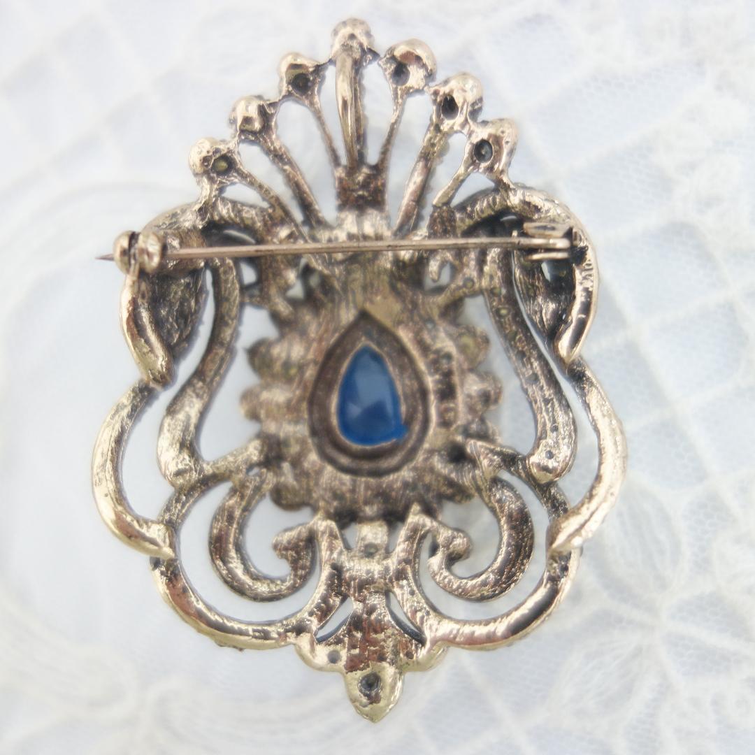 イミテーションマーカサイトとクリアカラーのラインストーンも効果的に使われていてこのブローチの雰囲気を盛り上げています♪