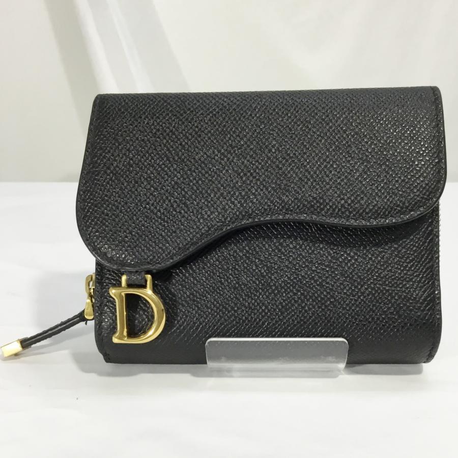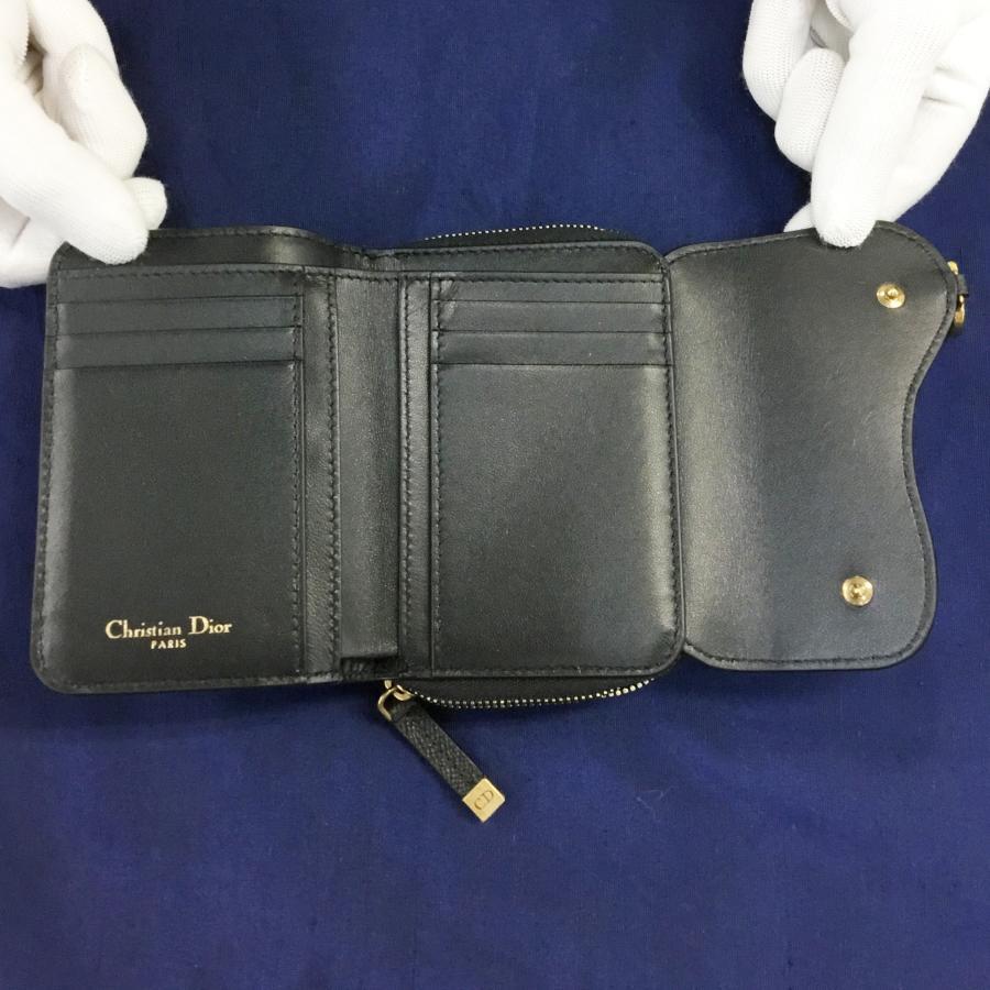 中古A クリスチャンディオール 財布 Christian Dior サドル ロータスウォレット 三つ折り レディース 147633