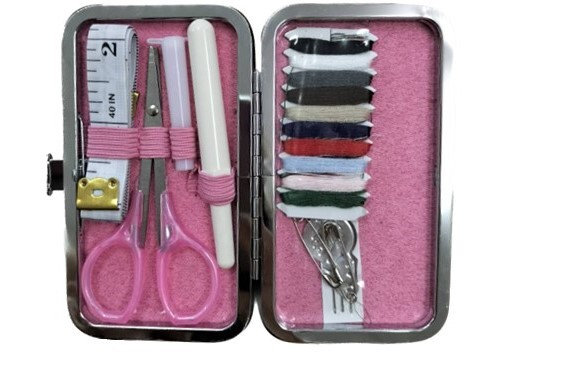 エレガントな薔薇柄のソーイングセットコンパクトサイズなので、持ち運びにも便利ですメジャー、はさみ、針入れ、針、糸切、糸、糸通しの7点セットサイズ:閉めた状態約W6.5×H10.5cm/開けた状態約W12.5×H10.5cm素材・成分:ケース表面:合皮、内布:ポリエステル100%カラー:ピンク(トップ画像のもの) 実際はお写真より明るいピンク色です。※照明の具合で実際とは色合いが異なる場合があります。ご了承の上ご購入ください。
