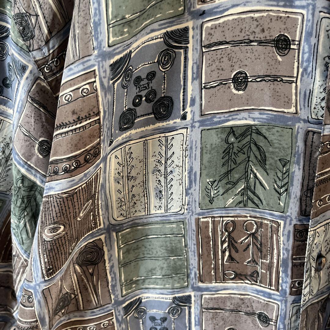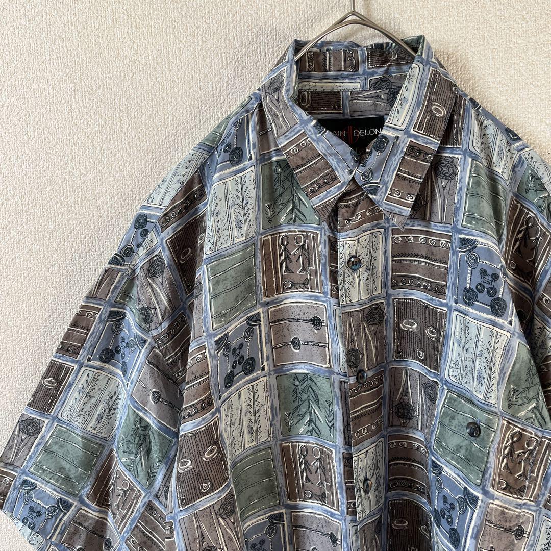 Q3 タイル柄シャツ パターン柄 アート ゆったり Mメンズ 半袖