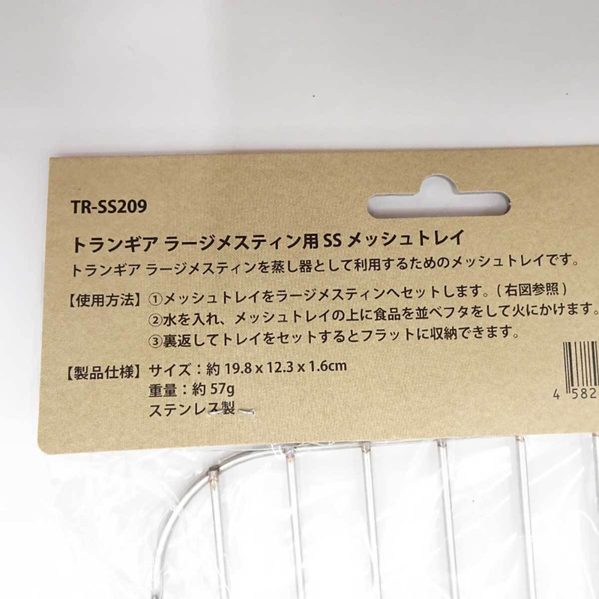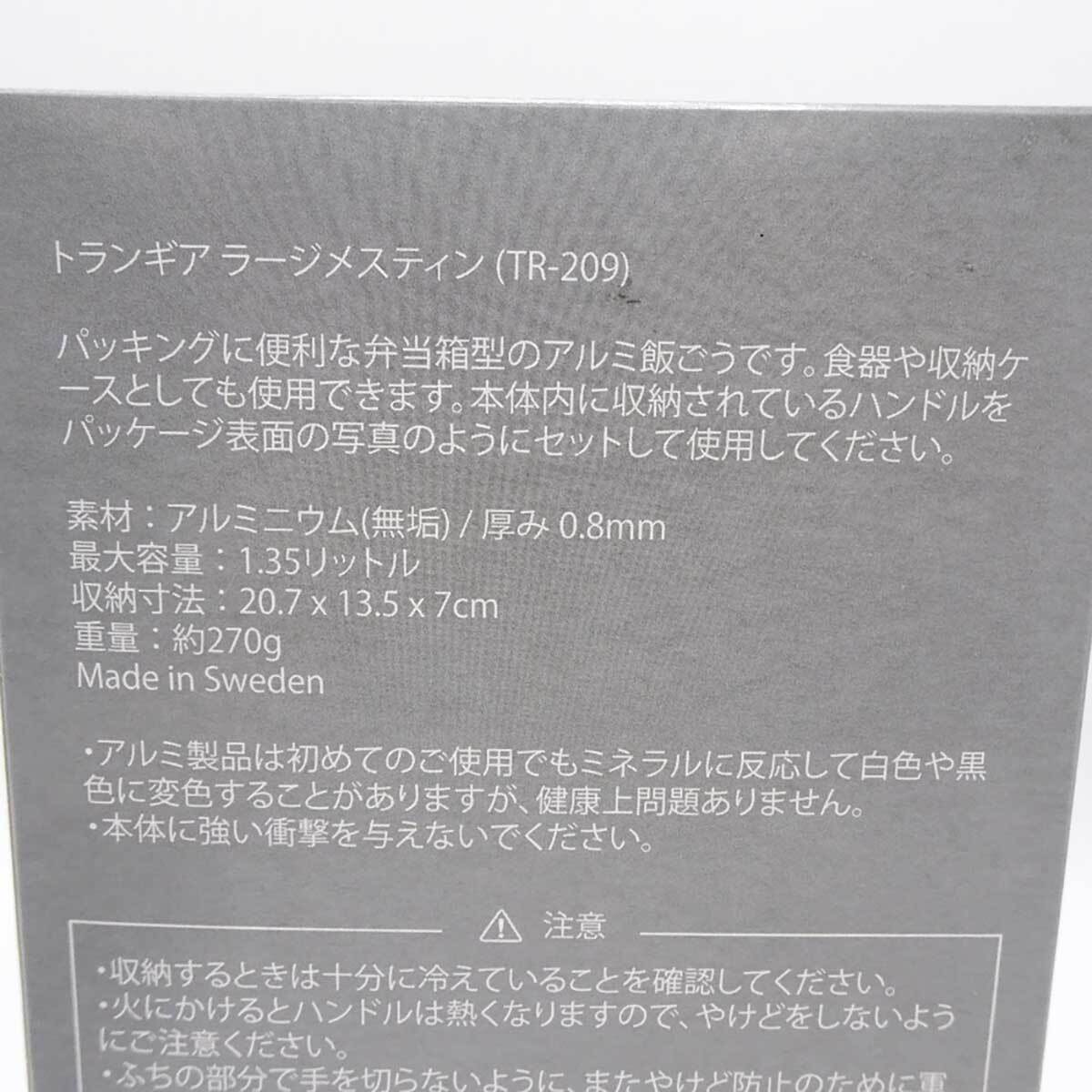 ※商品は画像にあるものがすべてとなります。 【仕様】 ブランド:トランギア タイプ:メスティン L MESSTIN ラージ [メッシュトレイ(TR-SS209)、ハンドル(TR-610209)付] 型番:TR-209 容量:1350ml 収納時サイズ:20.7×13.5×7cm 材質:アルミニウム(無垢)/厚み0.8mm 詳細備考:■trangia トランギア TR-209 メスティン ラージ ■trangia トランギア TR-SS209 メスティン用SSメッシュトレイ ■トランギア trangia メスティン用ハンドルL用 TR-610209 |