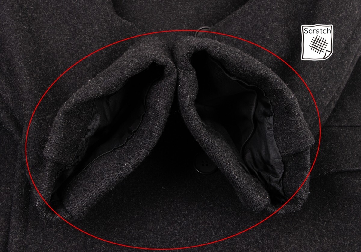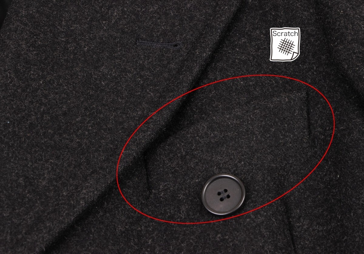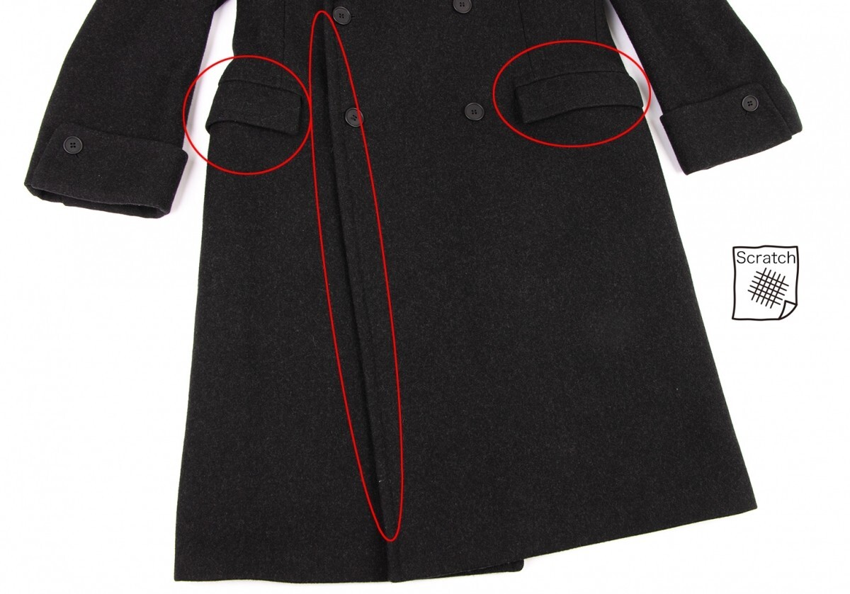 コンディション | フチ全体にスレ(襟元、袖口、ポケット口など)、左ポケット中にダメージ、裏地ベント根元に解れがあります(写真参照)その他目立ったシミ、汚れ等はありません。クリーニング済み ※商品の詳細写真はこちらよりご確認頂けます。 | ||||||||