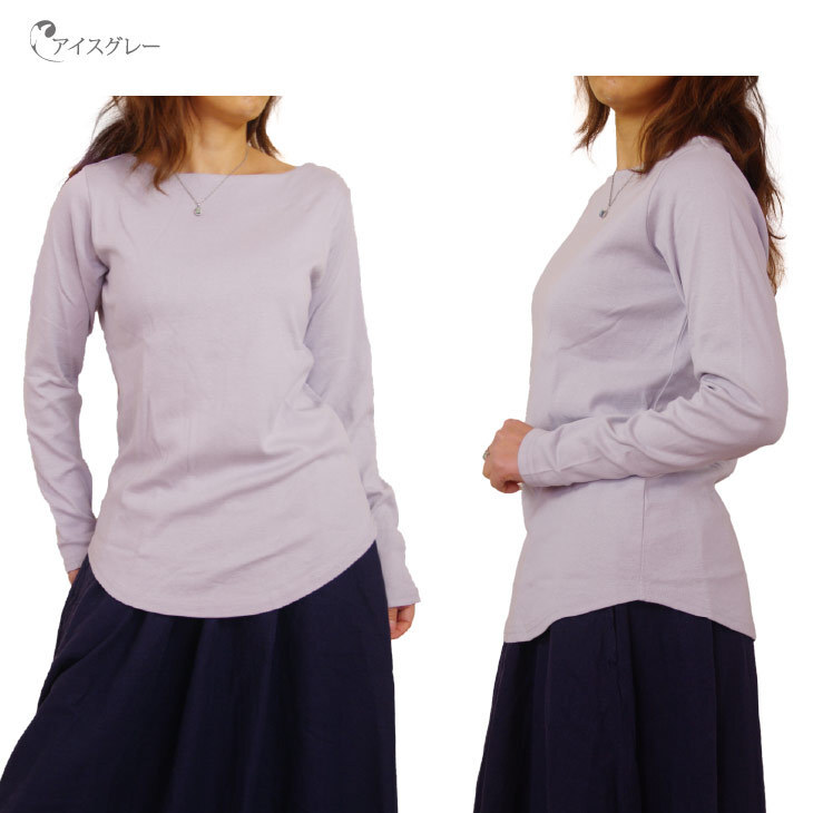 M アイスグレー Tシャツ 長袖 レディース ボートネック レディース コットン 綿 ロンT カットソー 無地 新品