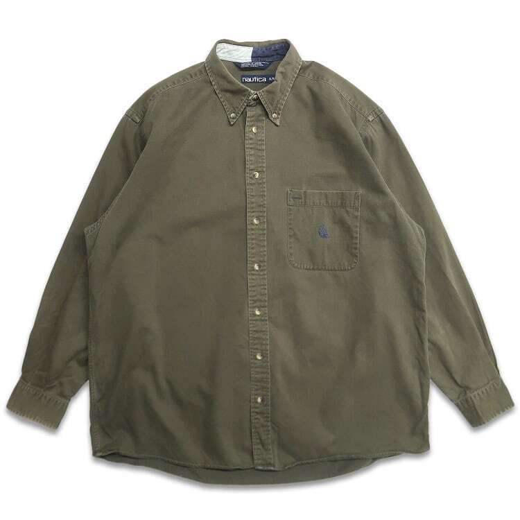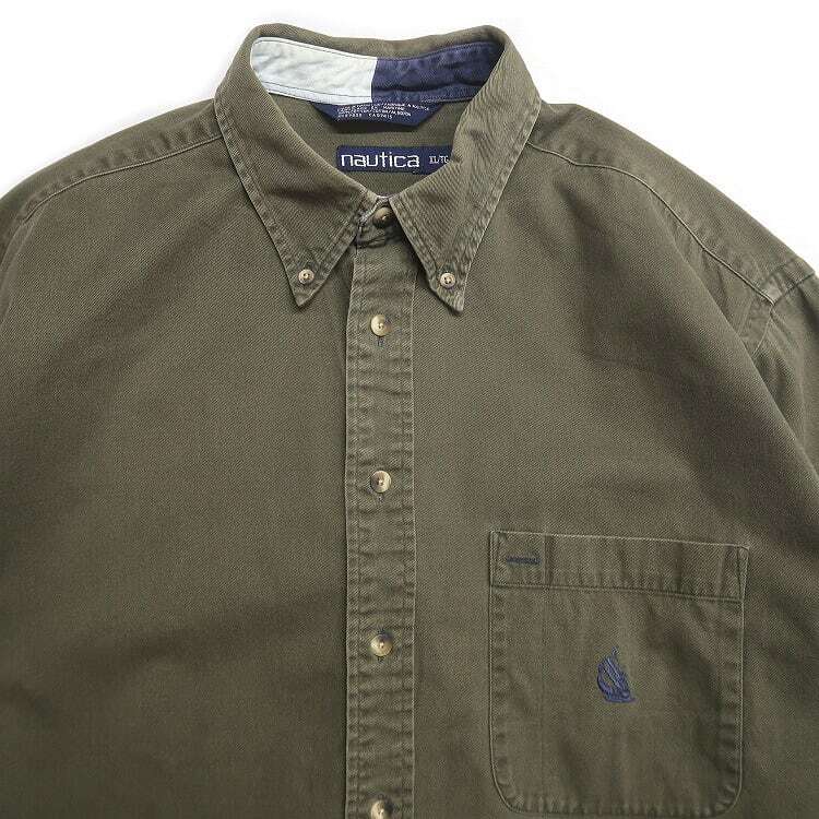 古着 90年代 ノーティカ NAUTICA ボタンダウンシャツ 長袖 グリーン系 表記:XL gd402279n w40413