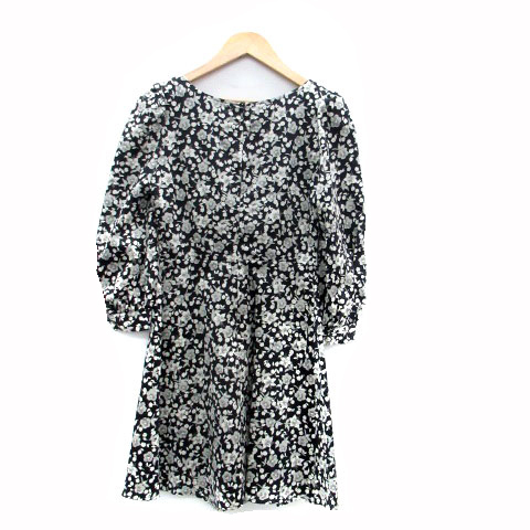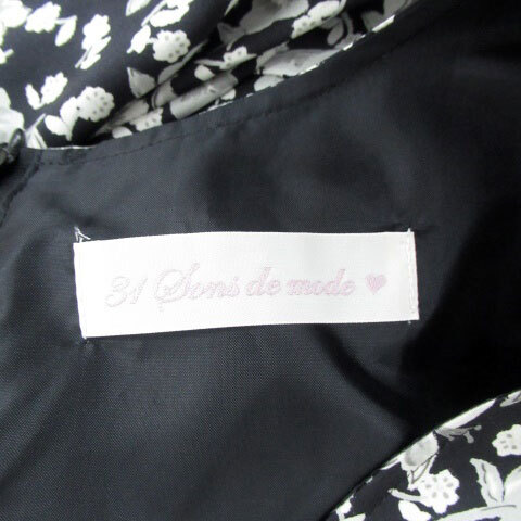 トランテアン ソン ドゥ モード 31 Sons de mode ワンピース Vネック 七分袖 ミニ丈 花柄 フェイクパール 36 黒 ブラック レディース