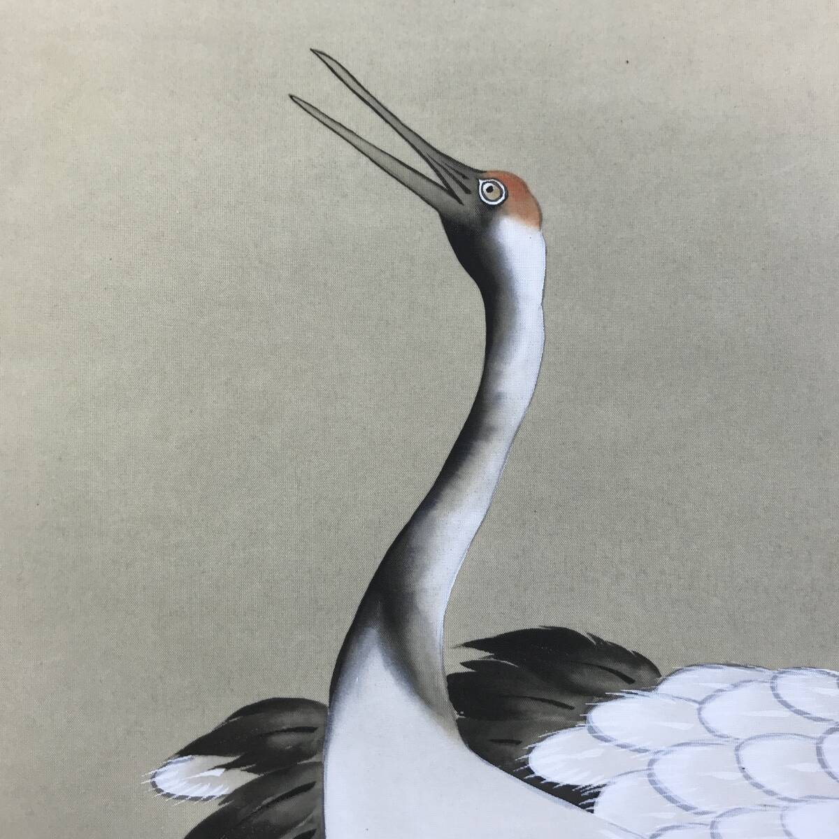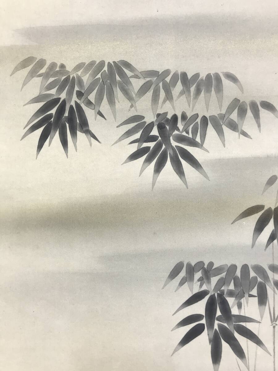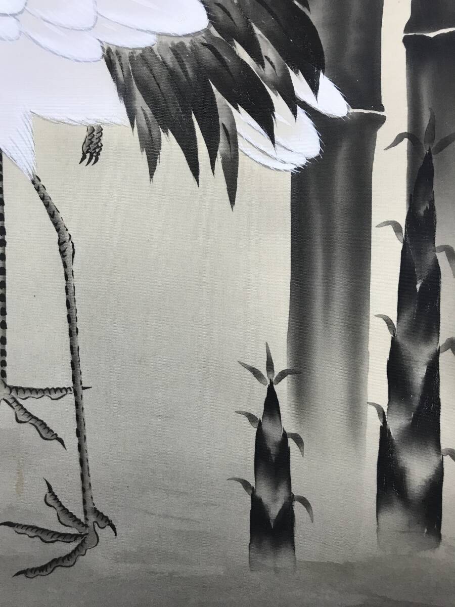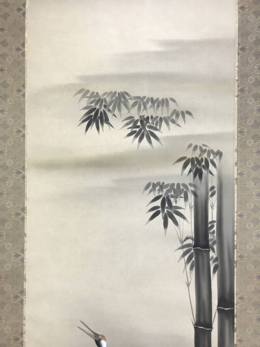 真作/雪草/竹に双鶴図/掛軸☆宝船☆AF-436