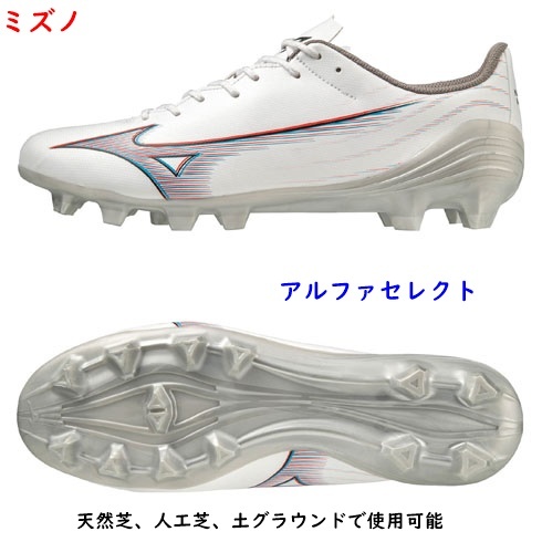 特長 ミズノアルファセレクト ホワイト 天然芝、人工芝、土グラウンドで使用できます