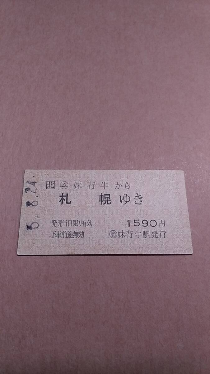 JR北海道 函館本線 (ム)妹背牛から札幌ゆき 1590円 (簡)妹背牛駅発行