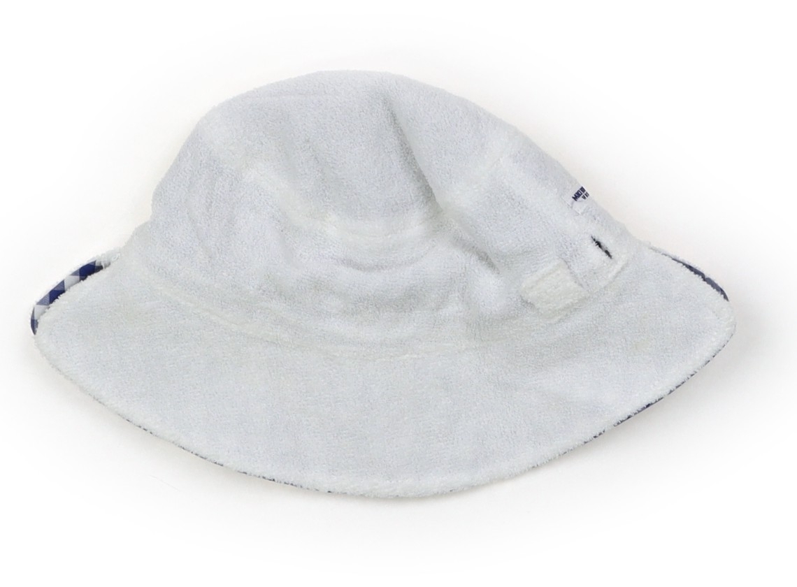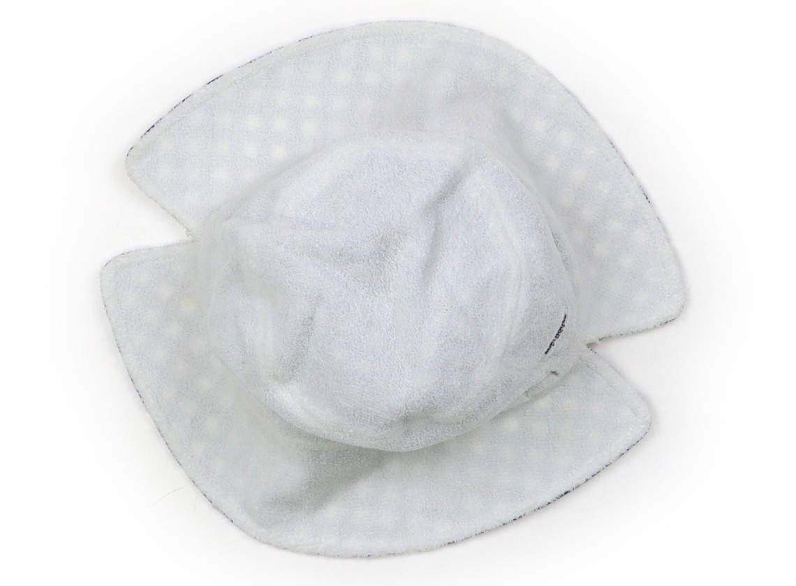 被り口約48cm。布帛生地とパイル生地のリバーシブル仕様。無地のパイル生地の面に、所々シミが見受けられます。