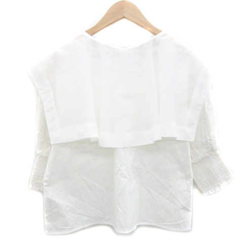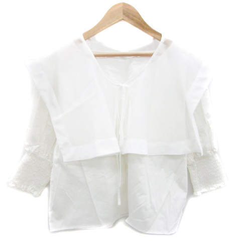 ワンアフター アナザー ナイスクラップ ブラウス シャツ 七分袖 Vネック バルーンスリーブ 襟付き 2way F ホワイト 白 レディース