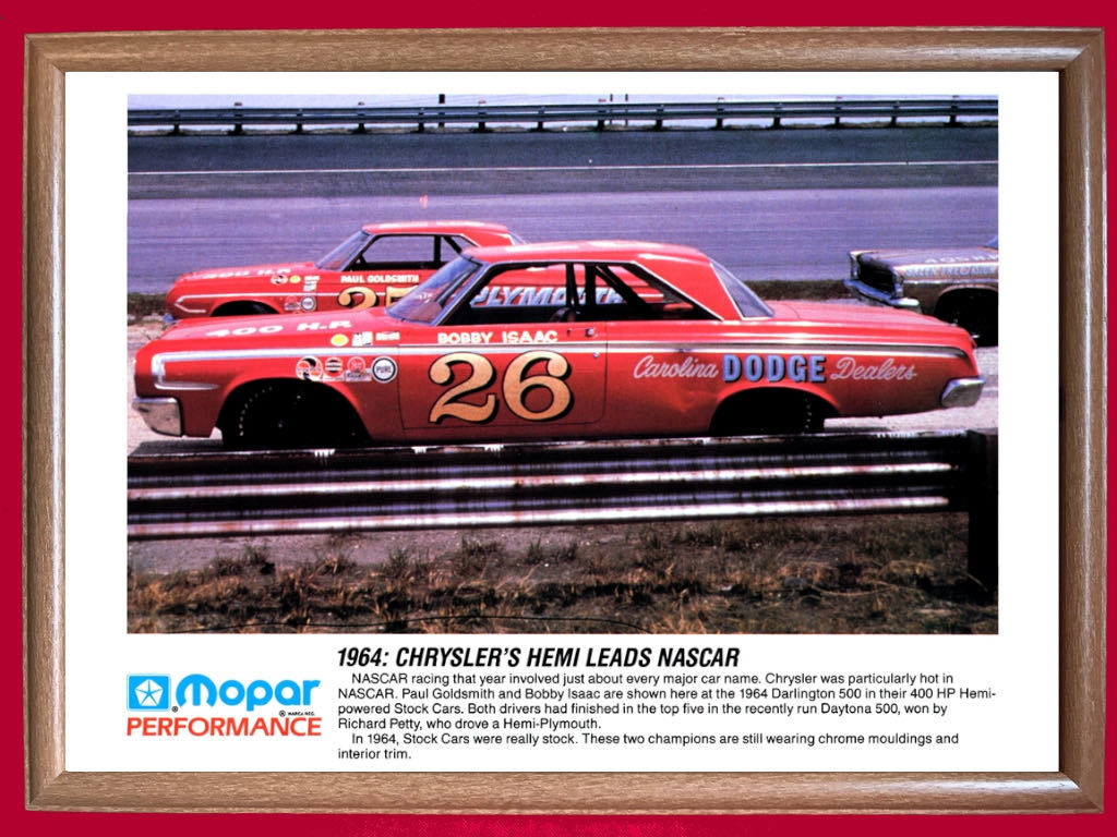 | Mopar Performance 1964 Dodge Plymouth HEMI Nascar 1964年にデビューしたクライスラーHEMIを搭載したDodgeとPlymouthのNascar2台のレアなポスターです。(ビンテージ物ではありません) ポスターサイズ:42cm × 29.7cm (額は付属しません。ポスターのみの出品です。額はA3サイズ用がピッタリです) こちらのポスターは高品質で厚みのあるアートペーパーに美しくプリントされたもので非常にハイクオリティなモノです。クラフト紙や布にプリントしたような粗い画質ではありません。存在感があり、しかも飾るのにも困らない絶妙なサイズですので、お好みのフレームに入れディスプレイするのにも最適です。また、しっかりとした厚みのあるポスターですので、そのまま無造作に壁などにピンでとめるディスプレイのスタイルもおススメです。 趣味の部屋・ガレージ・カフェ・ショップ・Bar・オフィスなどに! ※60's・70's・80'sを中心にマニアックな映画・旧車・バイク・音楽バンド関連などの様々なポスターを多数出品中ですのでチェックしてみてください! Click→映画関係ポスター Click→音楽関係ポスター Click→自動車関連ポスターA Click→自動車関連ポスターB Click→オートバイ関連ポスター Click→その他ポスター | ||