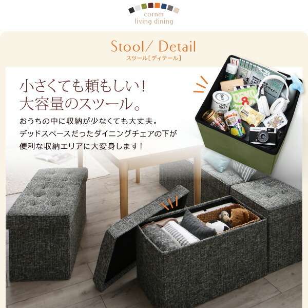 スツール ダイニング スペース有効活用 収納付きリビングダイニングシリーズ スツール単品 ベーシック生地 2P