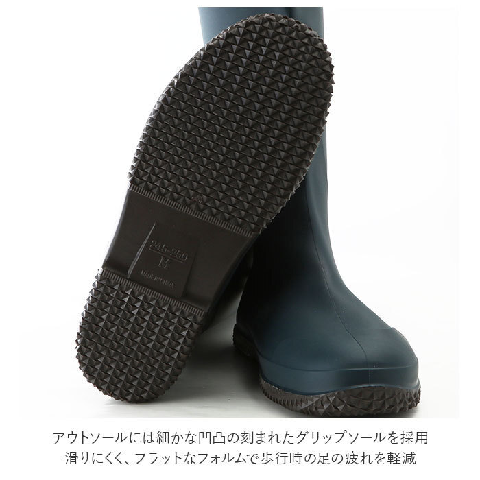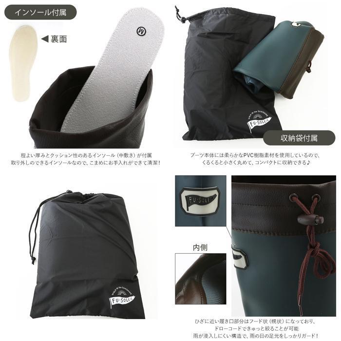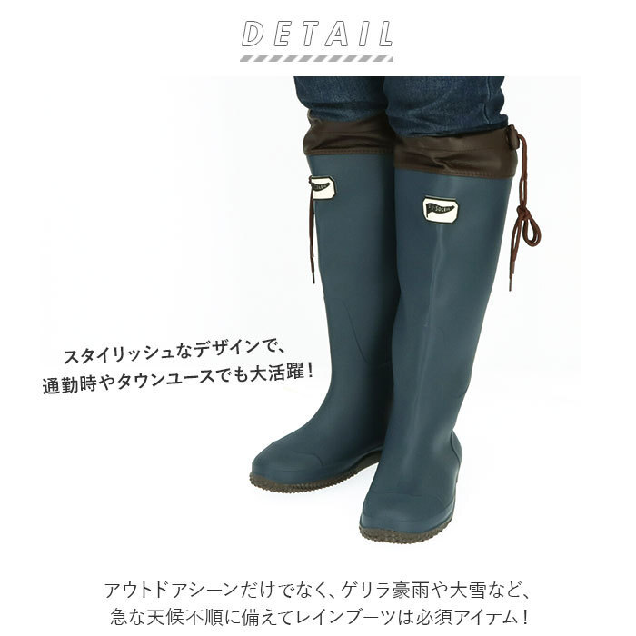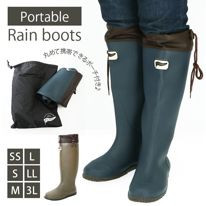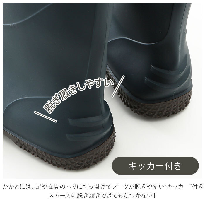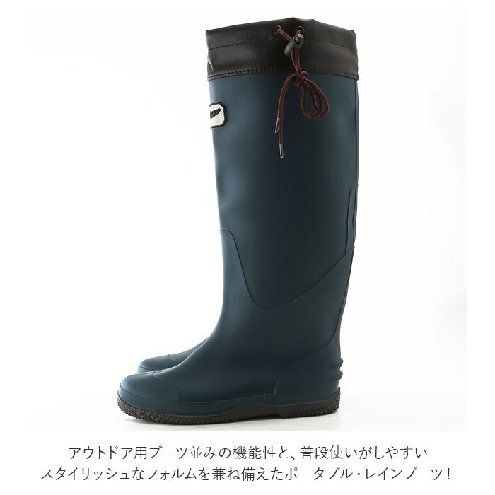 | 商品説明 | ・アウトドアシーンだけでなく、ゲリラ豪雨や大雪など、急な天候不順に備えてレインブーツは必須アイテム! ・アウトドア用ブーツ並みの機能性と、普段使いがしやすいスタイリッシュなフォルムを兼ね備えたポータブル・レインブーツ! ・ブーツ本体には柔らかなPVC樹脂素材を使用しているので、くるくると小さく丸めて、コンパクトに収納できる♪ ・付属の収納袋に入れて、いつものカバンに入れておけば、折りたたみ傘のように持ち運びもスマート♪ ・ひざに近い履き口部分はフード状(幌状)になっており、ドローコードできゅっと絞ることが可能。雨が浸入しにくい構造で、雨の日の足元をしっかりガード! ・程よい厚みとクッション性のあるインソール(中敷き)が付属。取り外しのできるインソールなので、こまめにお手入れができて、いつでも清潔! ・アウトソールには細かな凹凸の刻まれたグリップソールを採用。滑りにくく、フラットなフォルムで歩行時の足の疲れを軽減。 ・かかと部分には、足や玄関のへりに引っ掛けてブーツが脱ぎやすい“キッカー”付き。スムーズに脱ぎ履きできてもたつかない! ・落ち着いたカラーに、フェイクレザーのフードを合わせたスタイリッシュなデザインで、通勤時やタウンユースでも大活躍! | |||||||||||||