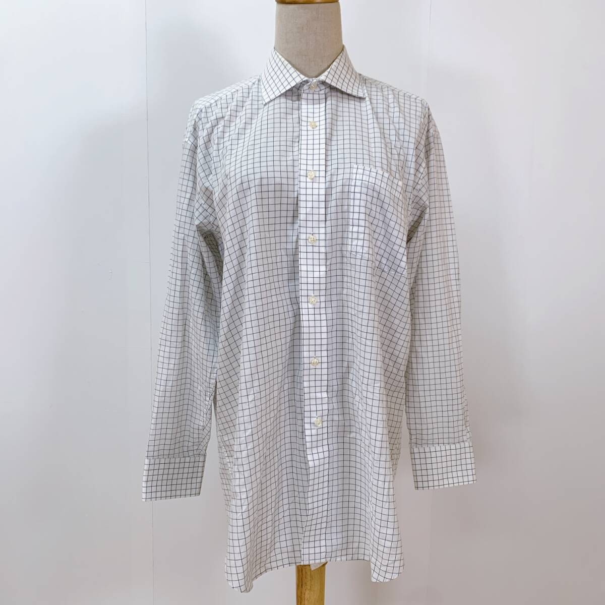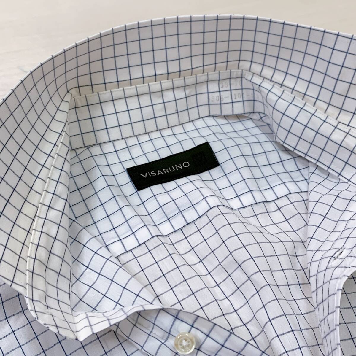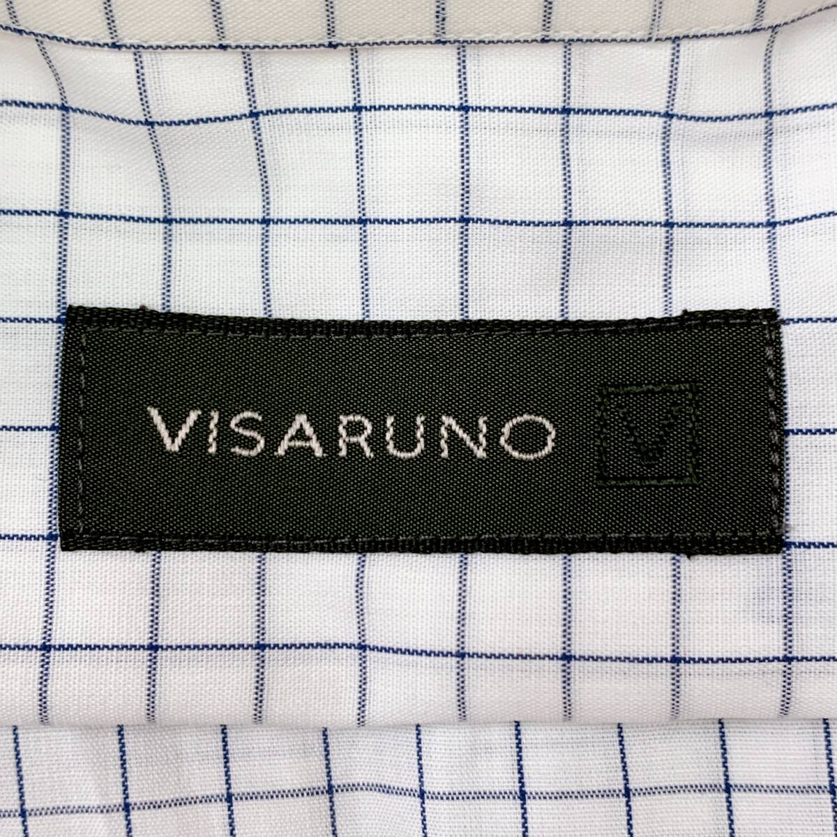 YH0448 VISARUNO ヴィサルノ メンズ 長袖 シャツ Yシャツ ホワイト 白 チェック柄 ビジネス オフィス きれいめ シンプル 万能 USED 古着