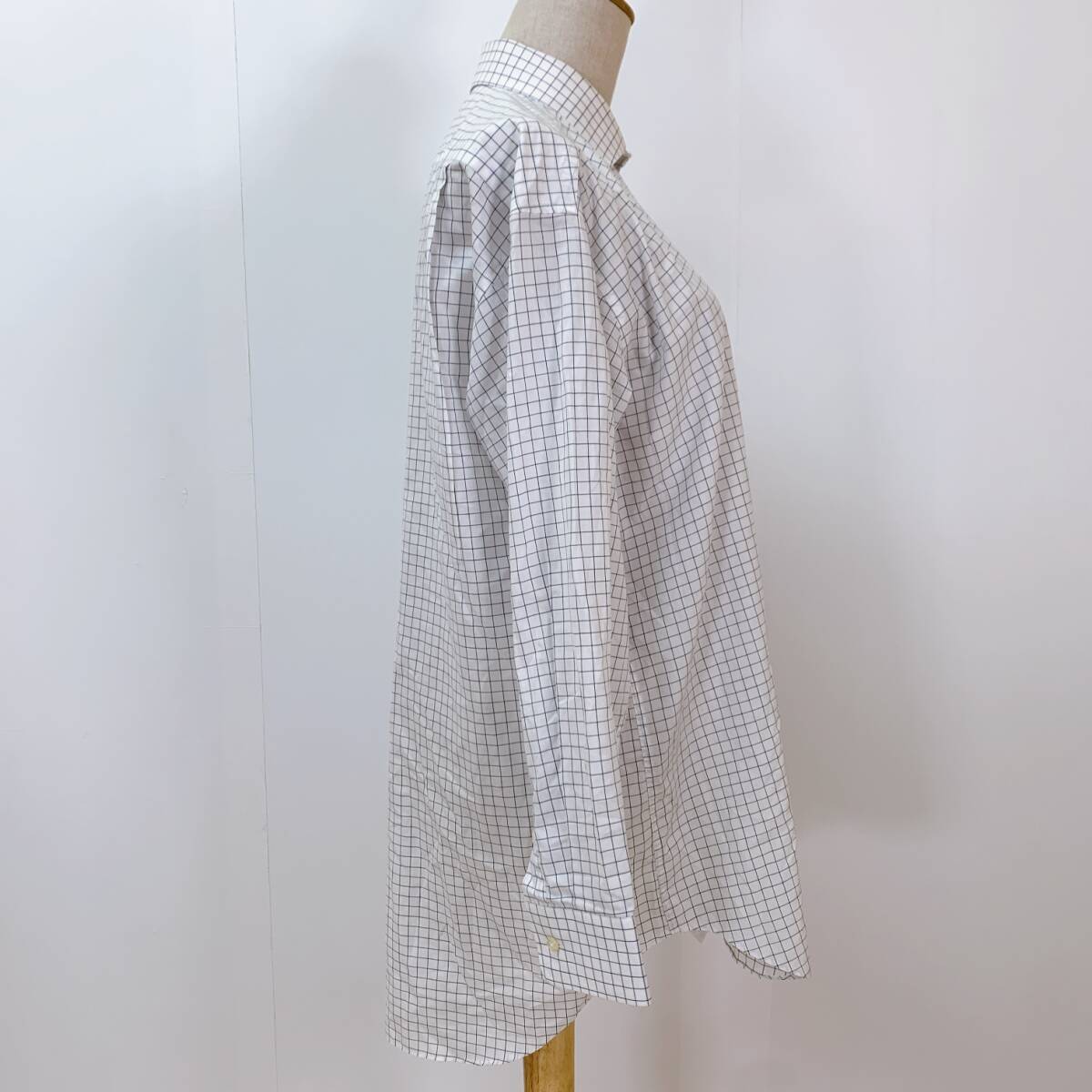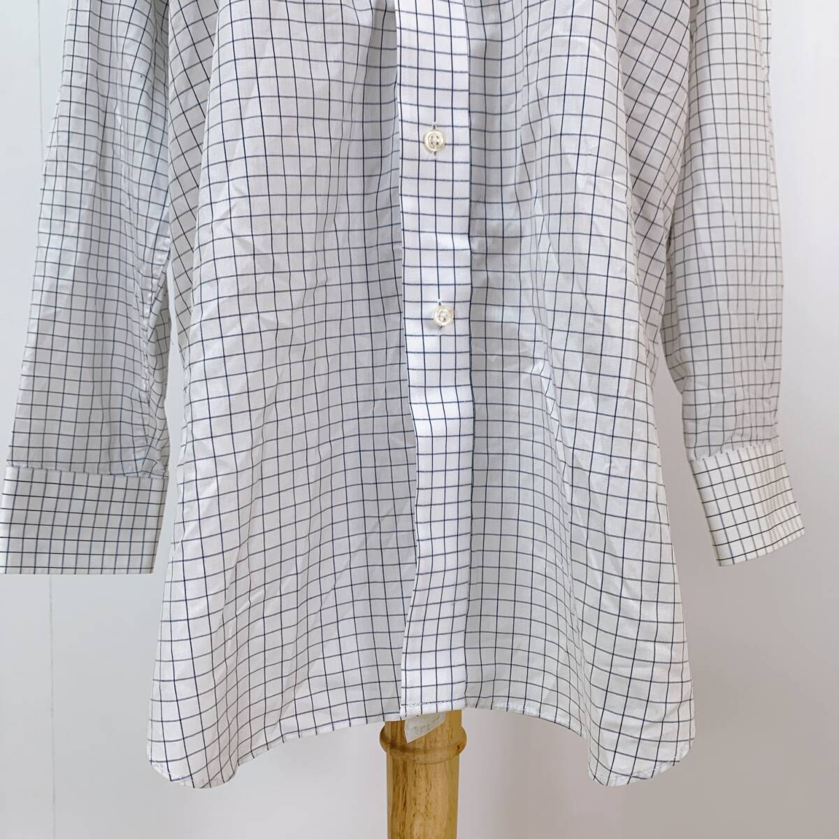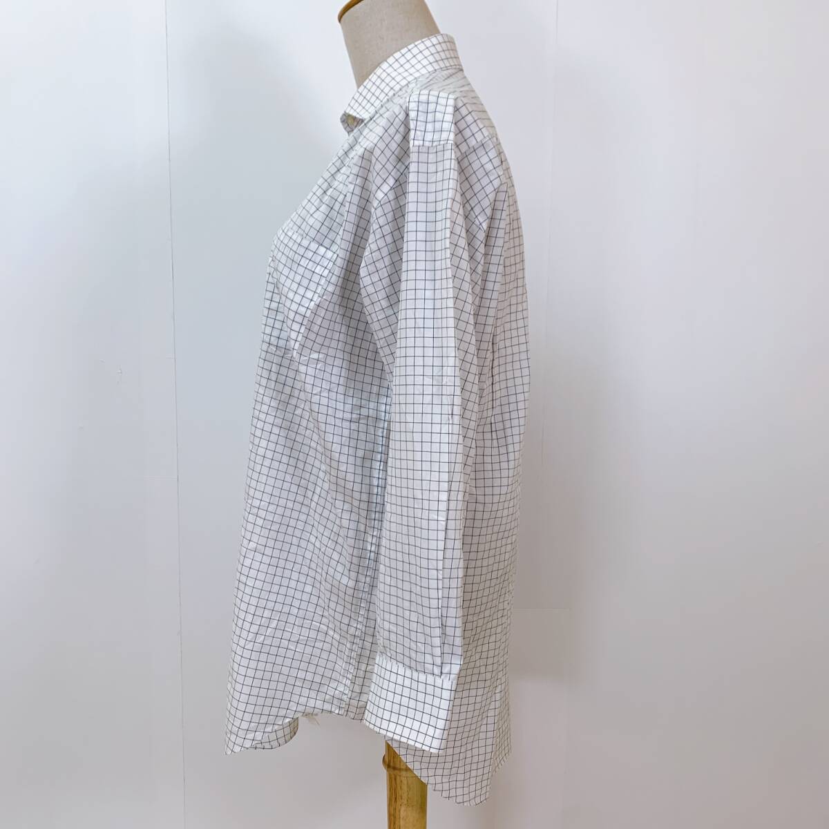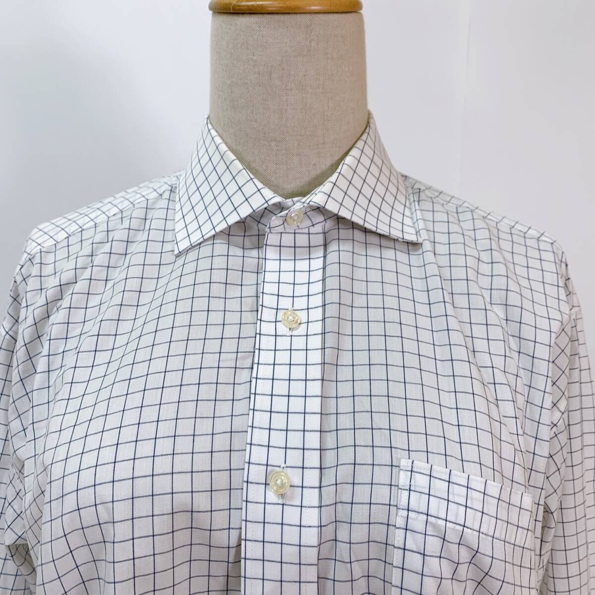 YH0448 VISARUNO ヴィサルノ メンズ 長袖 シャツ Yシャツ ホワイト 白 チェック柄 ビジネス オフィス きれいめ シンプル 万能 USED 古着