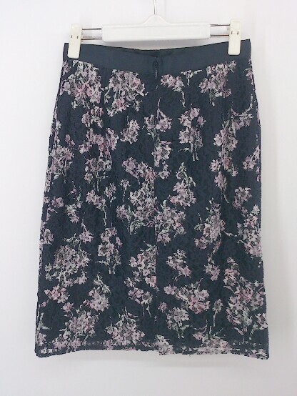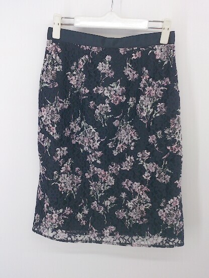 ◇ MISCH MASCH ミッシュマッシュ 花柄 総レース 膝丈 台形 スカート サイズM ネイビー ピンク ホワイト レディース P