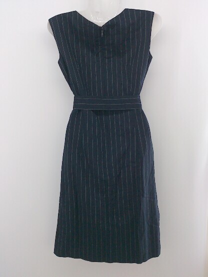 ◇ ◎ NEWYORKER ニューヨーカー ストライプ ノースリーブ 膝丈 ワンピース サイズ7AR ネイビー ホワイト系 レディース P