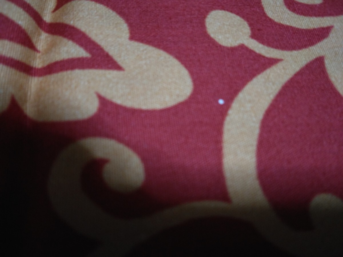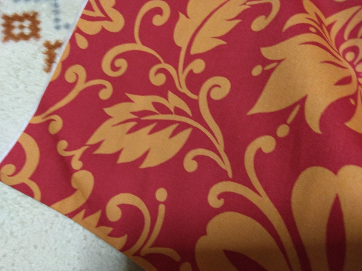 赤地にオレンジ系のお花柄の綿生地です。生地の詳細は不明ですが、スケアぐらいの厚みかと思います。少なめですが、画像5の様な点(ハゲ)がいくつかあります。気になる方は、ご入札をお控え下さい。