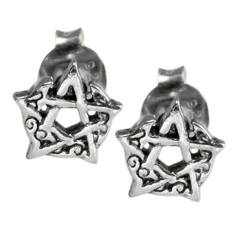 Dryad Design: Sterling Silver Crescent Moon Pentacle Stud Earrings