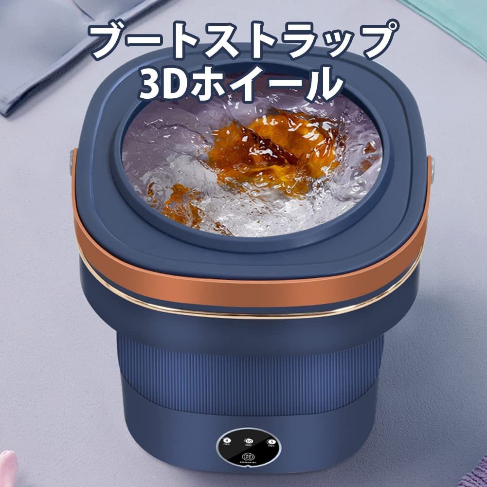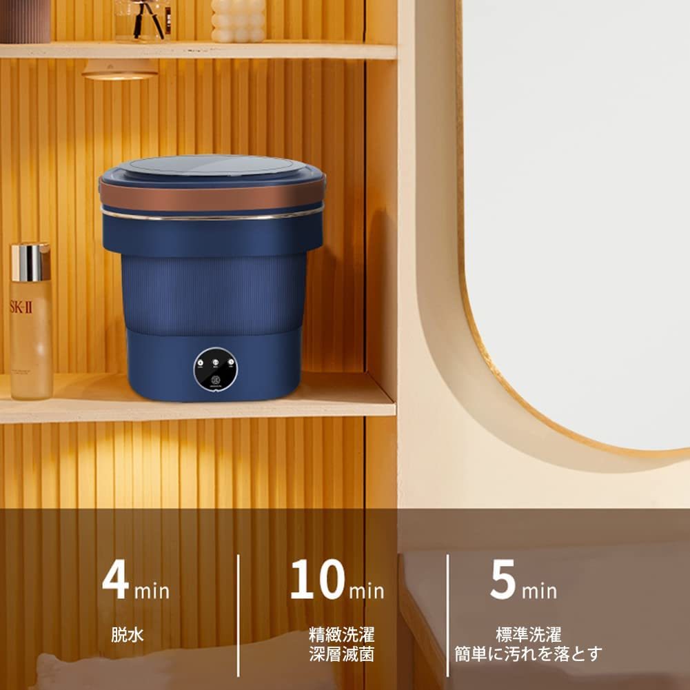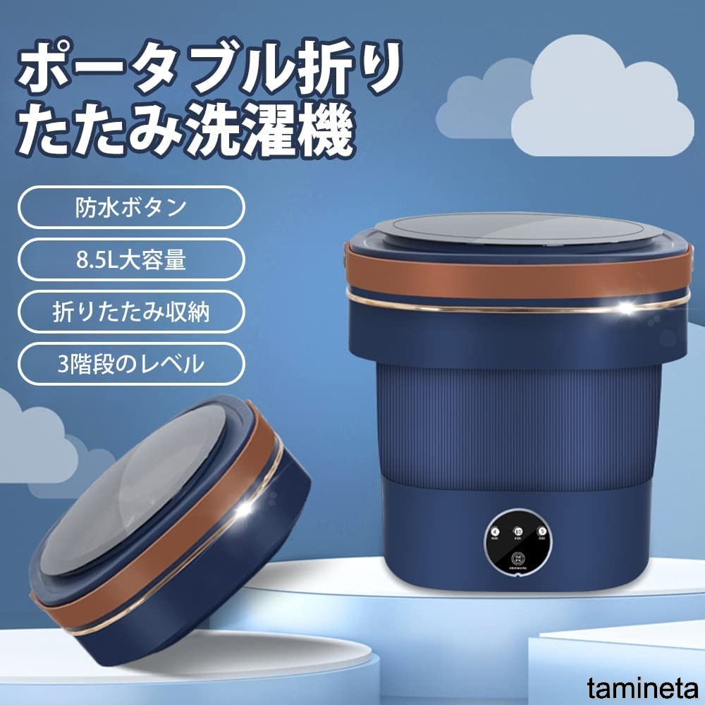 おしゃれな折り畳み洗濯機 ポータブル スタイリッシュ 脱水 8.5L 青色 少量 分別 インテリア 旅行 持ち運び 小物洗いにおすすめの洗濯機
