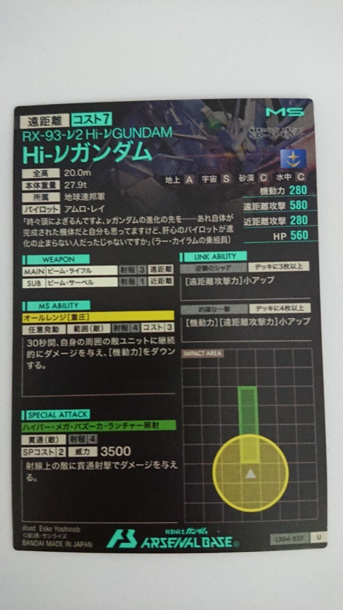 機動戦士ガンダムアーセナルベースよりカードの出品になります。
