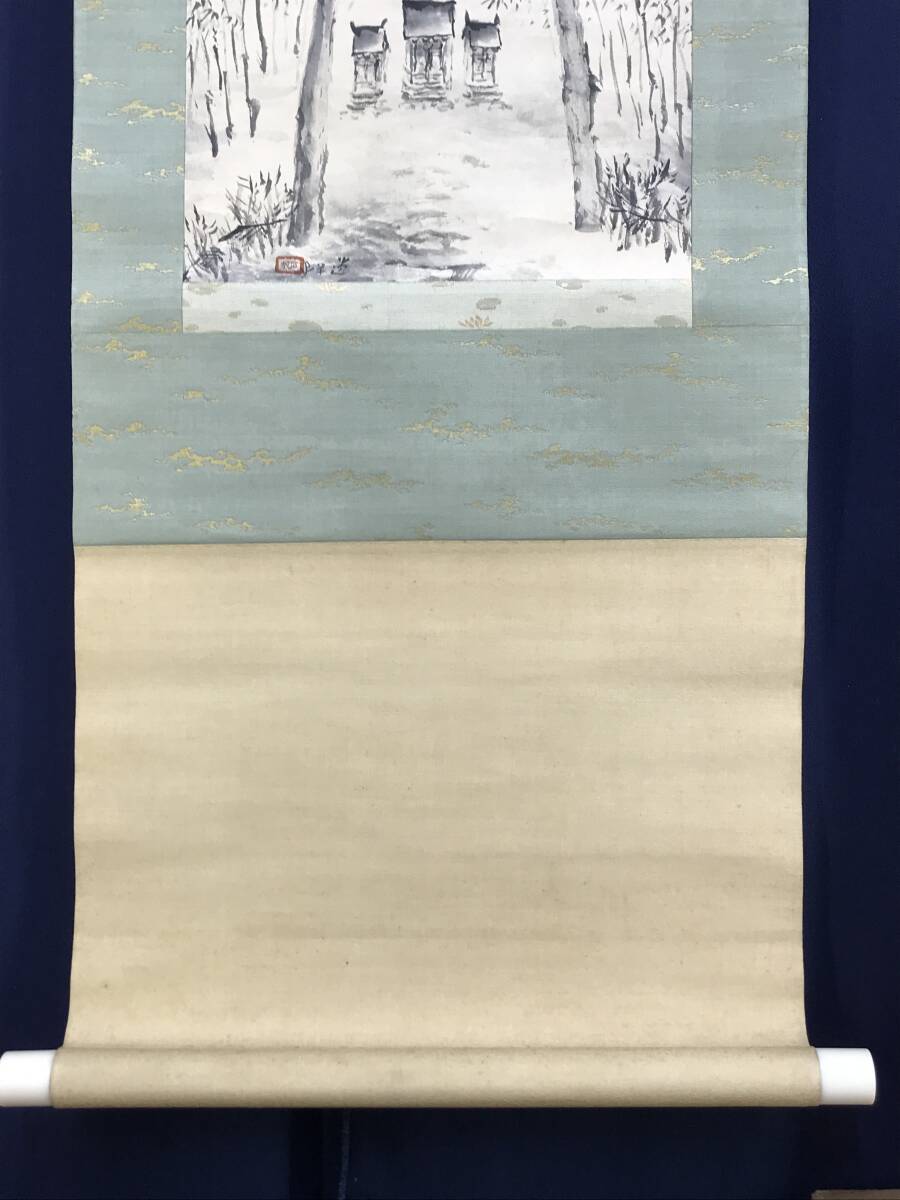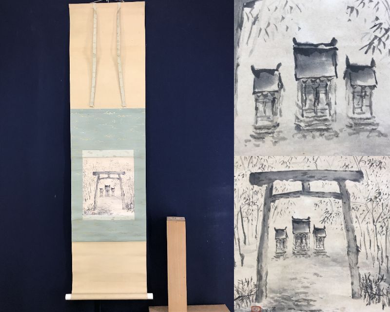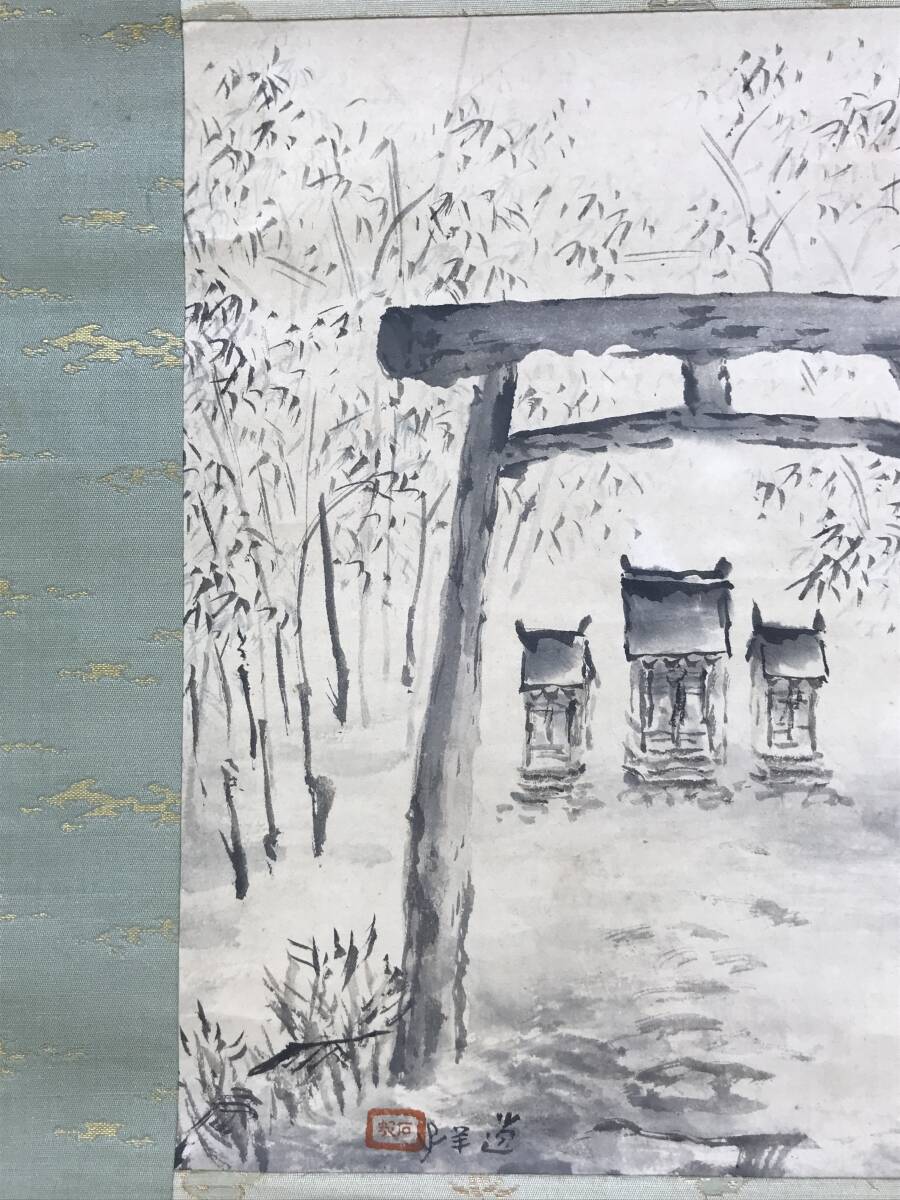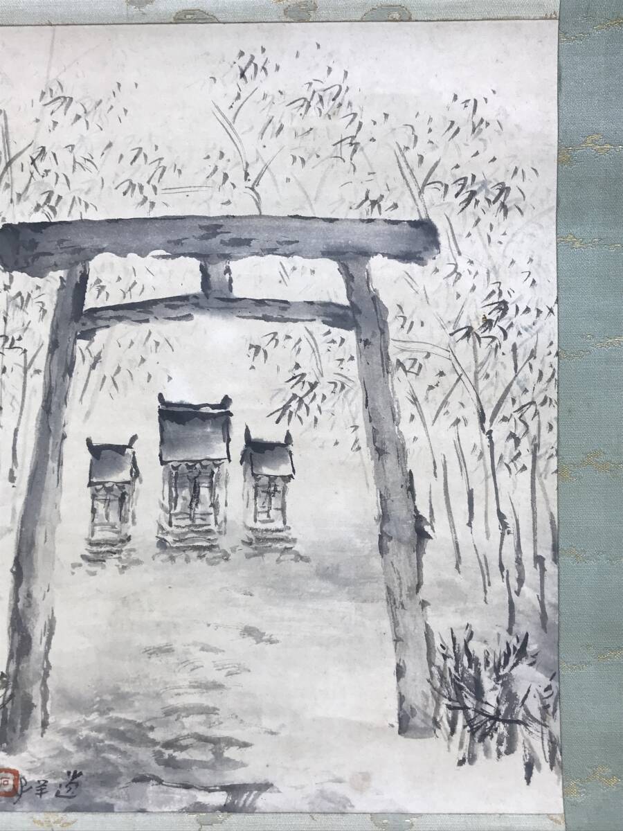 真作/石邨/野々宮/鳥居宮之図/山水図/掛軸☆宝船☆AF-784